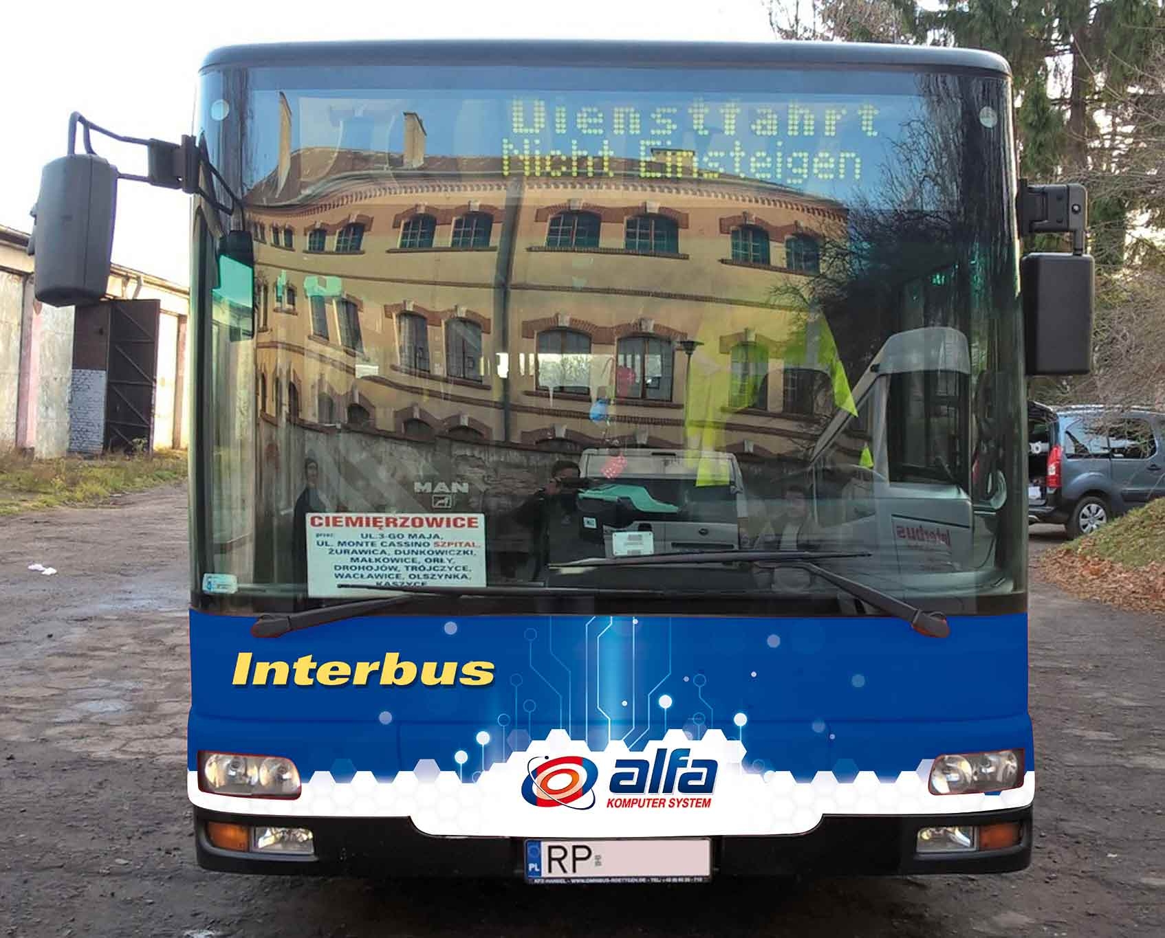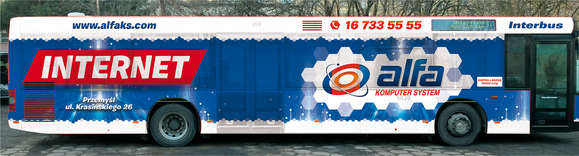 • ALFA Komputer System - Projekt oklejenia auta. Autobus MAN. Przód - samo