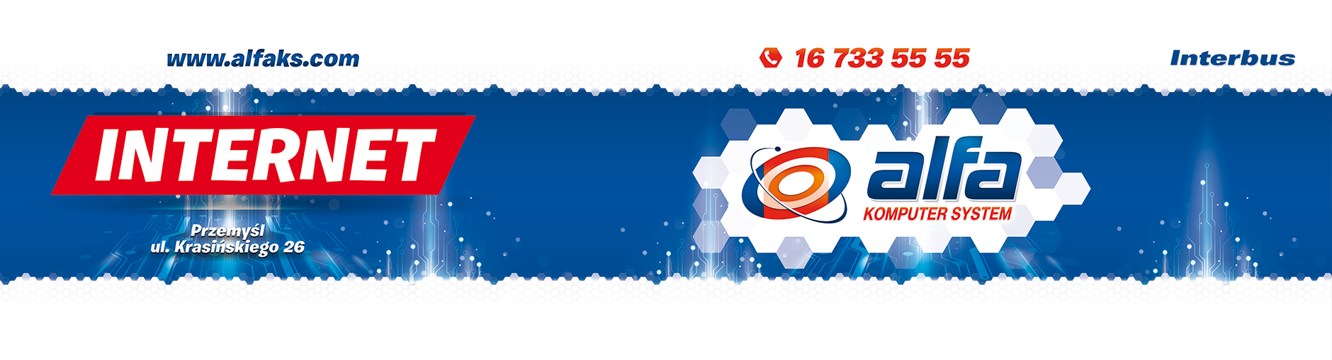 Wykonanie materiałów graficznych na kampanię reklamową dla firmy ALFA Komputer System z Przemyśla. Dostawcy Internetu, salonu i serwisu komputerowego.