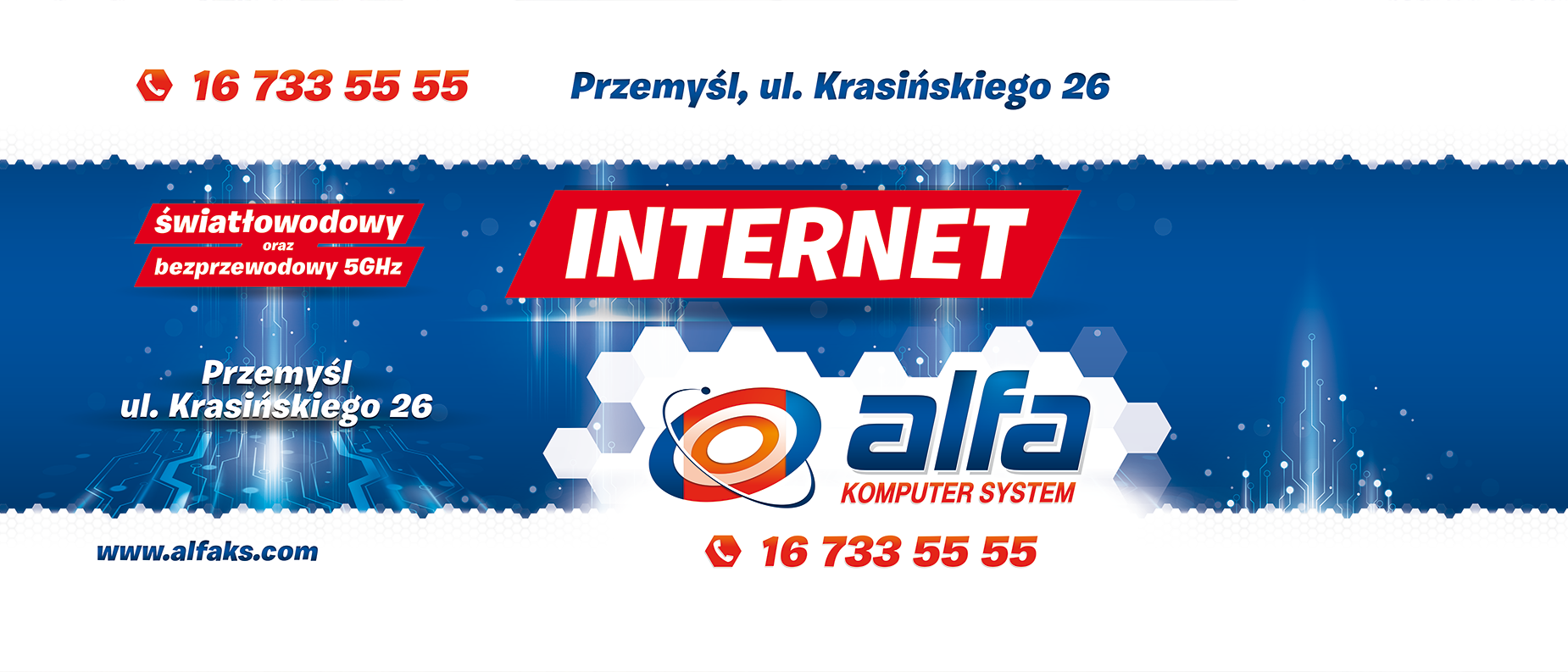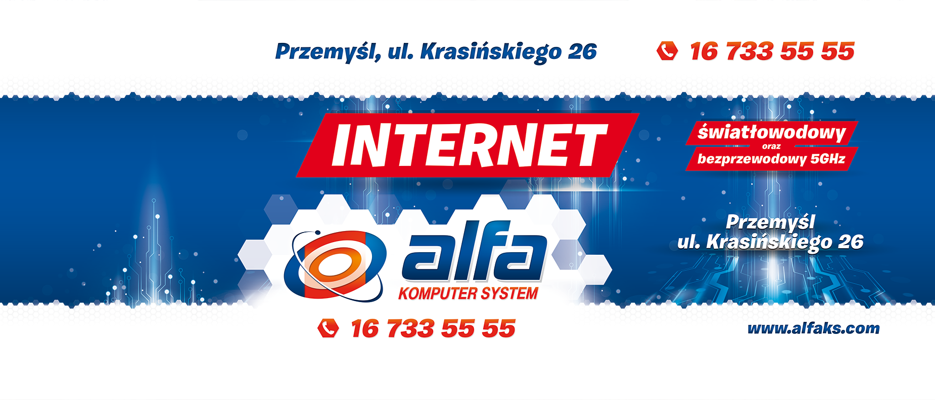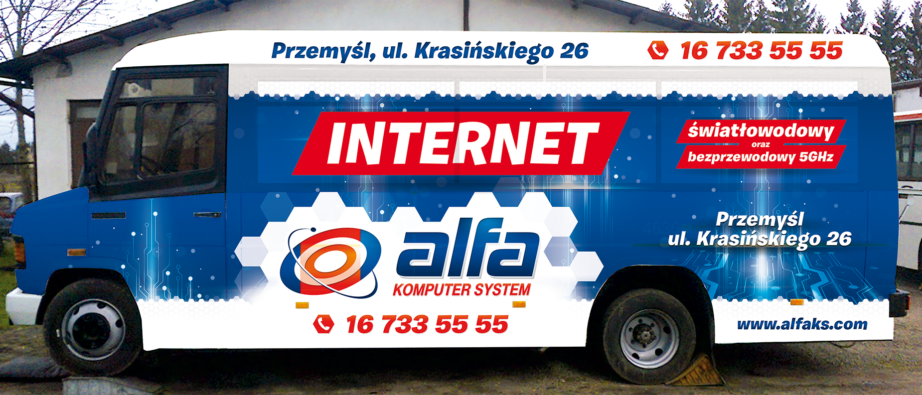 Wykonanie materiałów graficznych na kampanię reklamową dla firmy ALFA Komputer System z Przemyśla. Dostawcy Internetu, salonu i serwisu komputerowego.