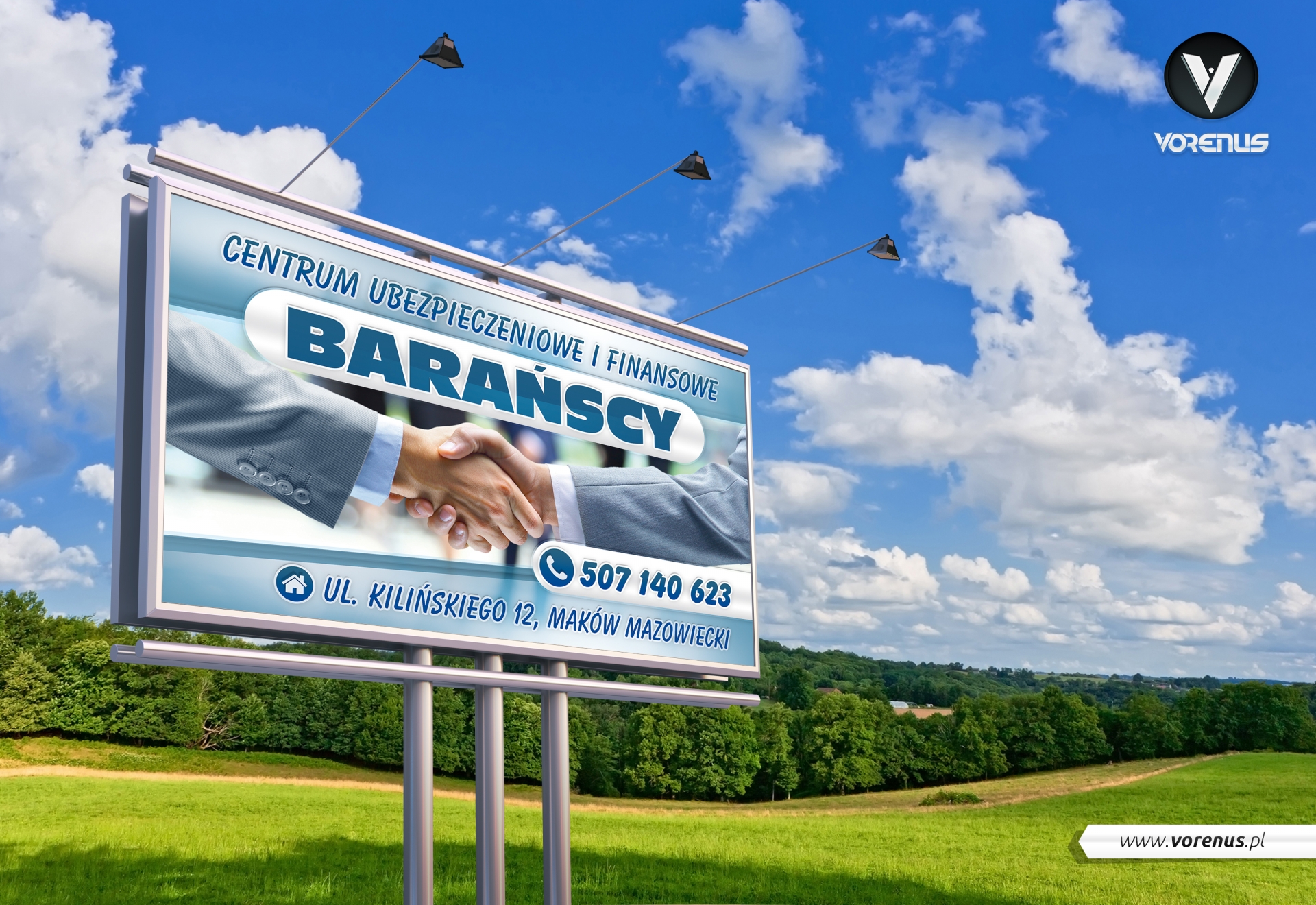 • BARAŃSCY - Centrum Ubezpieczeniowe i Finansowe. Banner 350x200cm. Projekt VORENUS. Maków Mazowiecki. Z Makowa. W Makowie