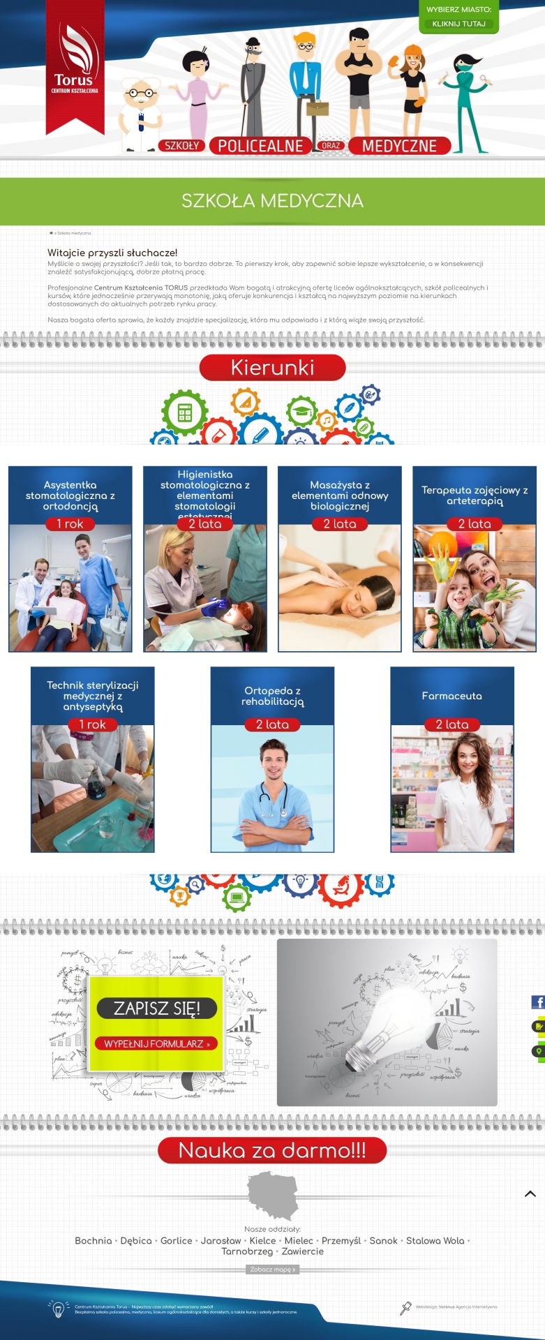 • Centrum Kształcenia Torus - Strona www 2019. Szkoła medyczna. Lista kierunków. Projekt VORENUS
