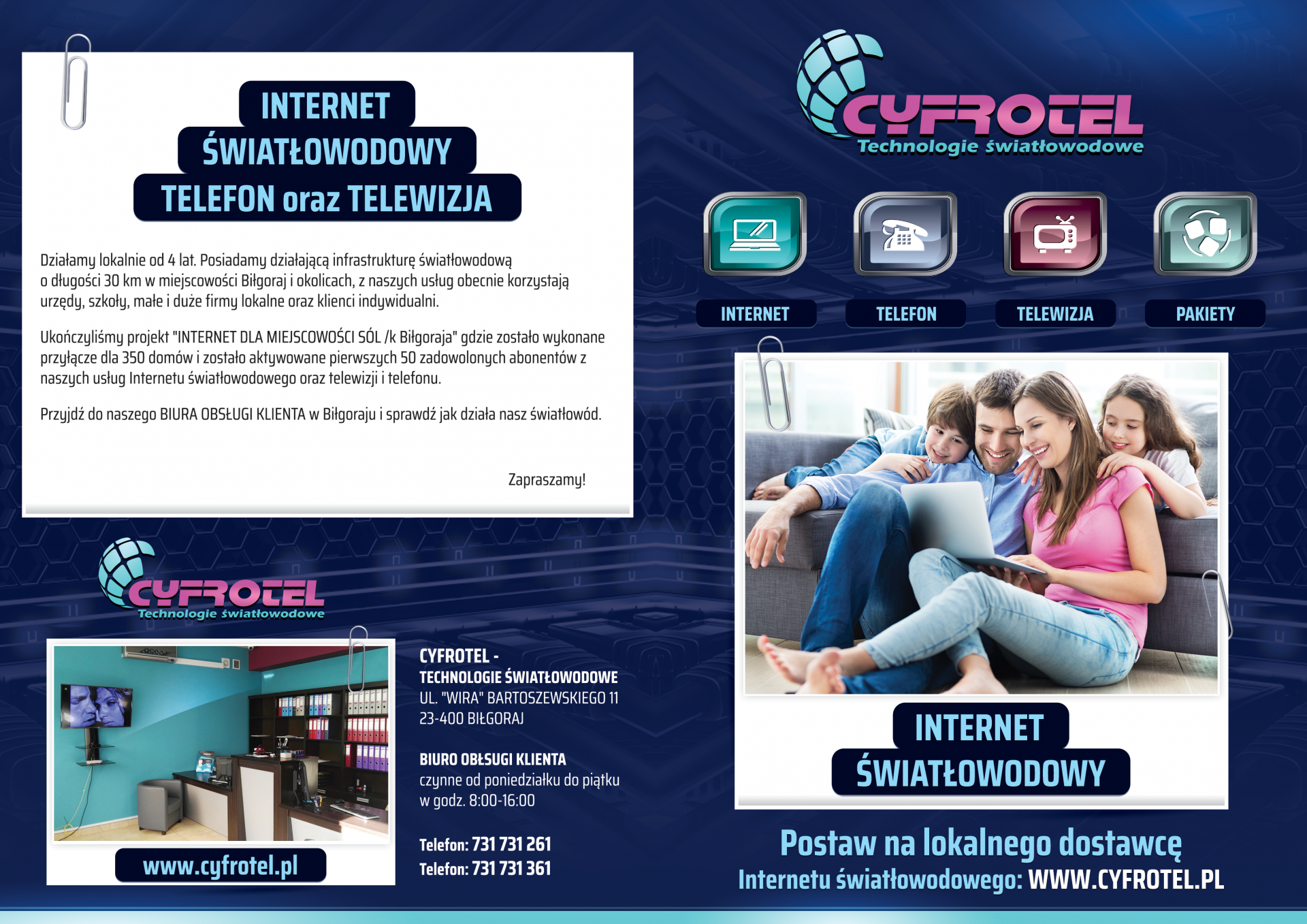 Firma CYFROTEL dostarcza INTERNET, TELEFON oraz TELEWIZJĘ.