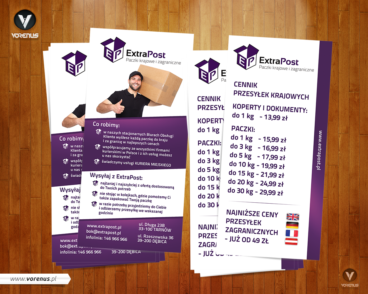 Projekt graficzny ulotki dwustronnej w formacie DL. Cennik przesyłek krajowych i zagranicznych.