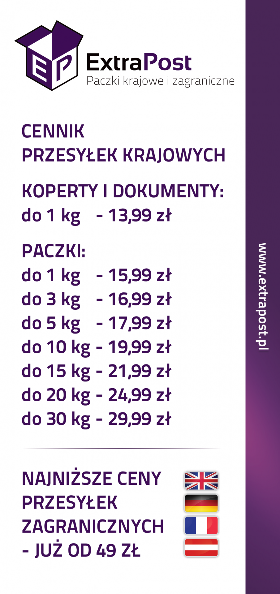 • ExtraPost Ulotka DL Cennik. Ulotka przód