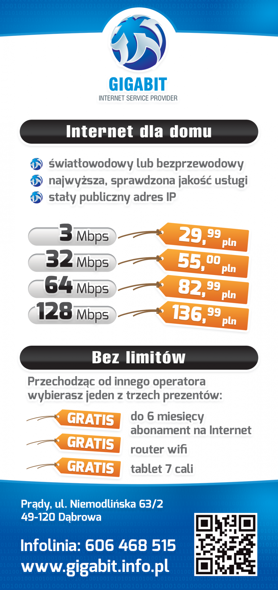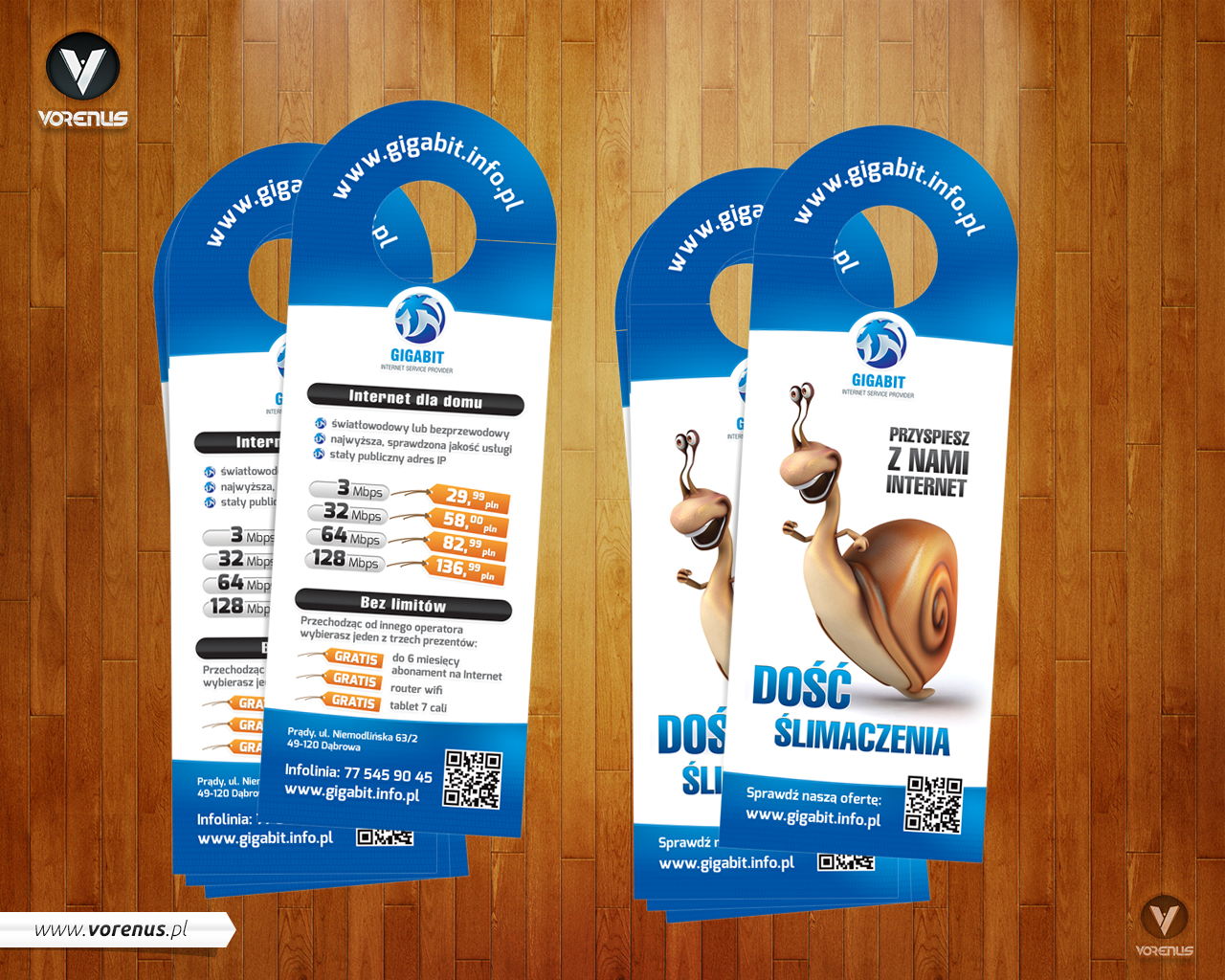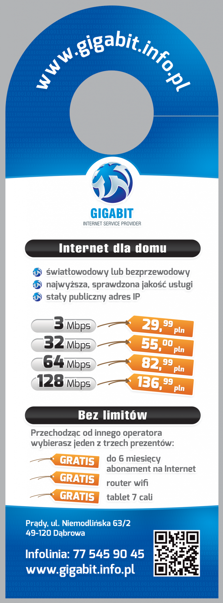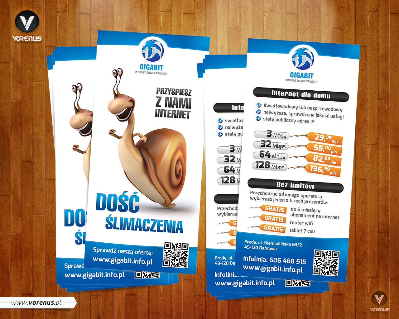 Projekt materiałów reklamowych dla firmy GigaBit - Dostawcy Internetu dla domu i biura, telefonii oraz usług dla biznesu.