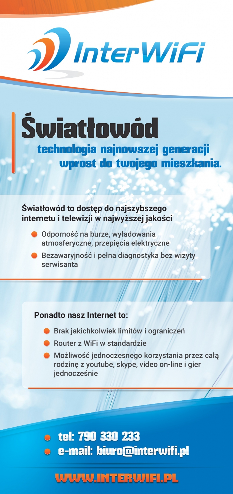 Firma "InterWiFi" to dostawca usług multimedialnych takich jak Internet światłowodowy, telewizja cyfrowa i Internet radiowy.