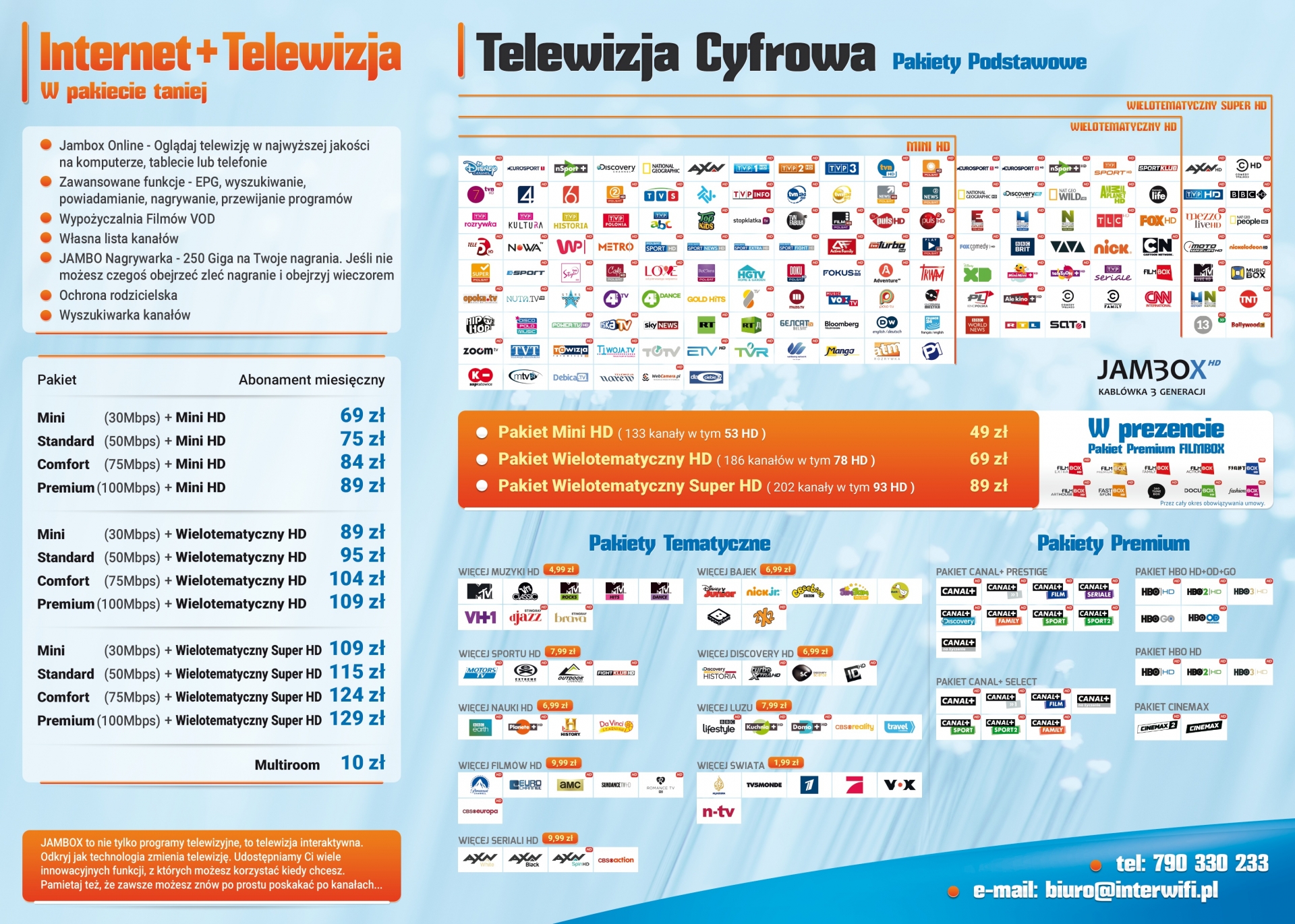 Oferta Telewizji HD oraz Internetu. Pakiety TV z Internetem. Oferta kanałów telewizyjnych. Prezentacja ikon programowych. Pakiety podstawowe, pakiety dodatkowe oraz premium.