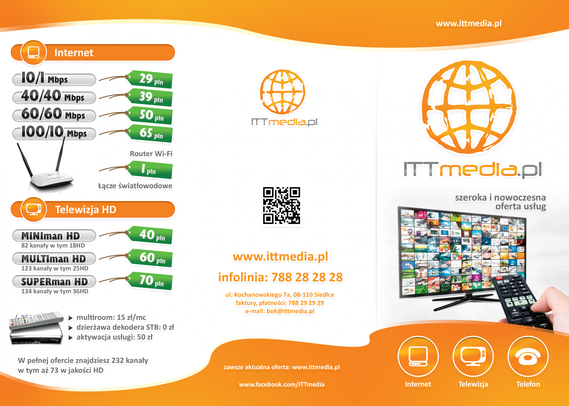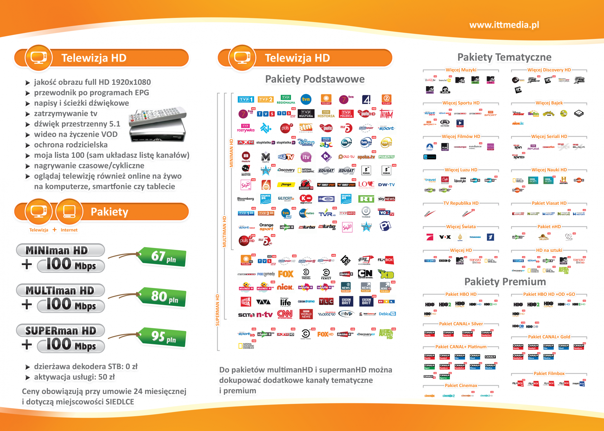 • ITTmedia - Ulotka 2 3xDL. Telewizja HD, Internet, Pakiety. Ulotka składana - strony zewnętrzne