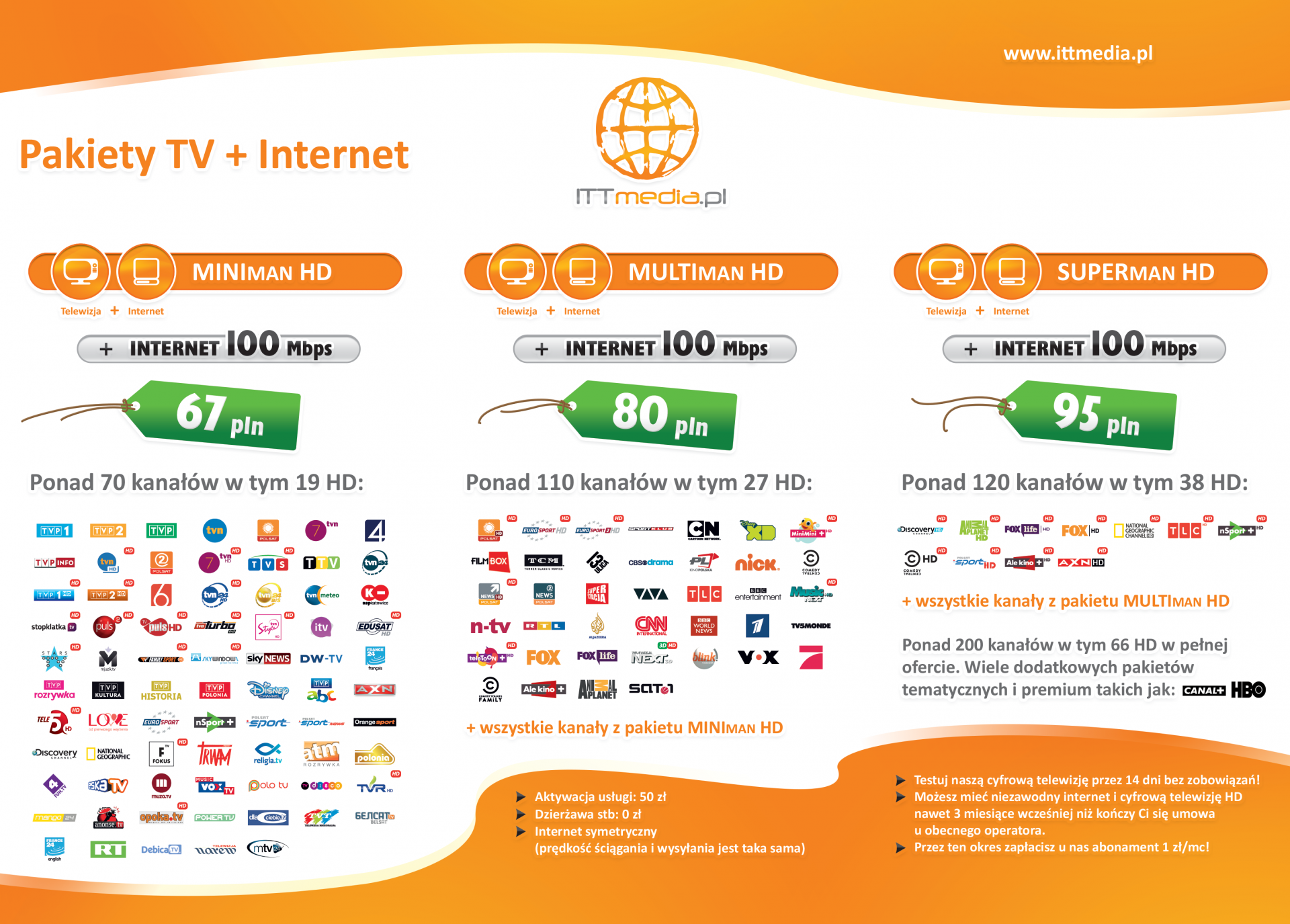 Odkryj niezwykły potencjał nowoczesnej telewizji cyfrowej ITTmedia! Dostarczymy Ci niewiarygodnych przeżyć dzięki najwyższej jakości obrazu i dźwięku.
