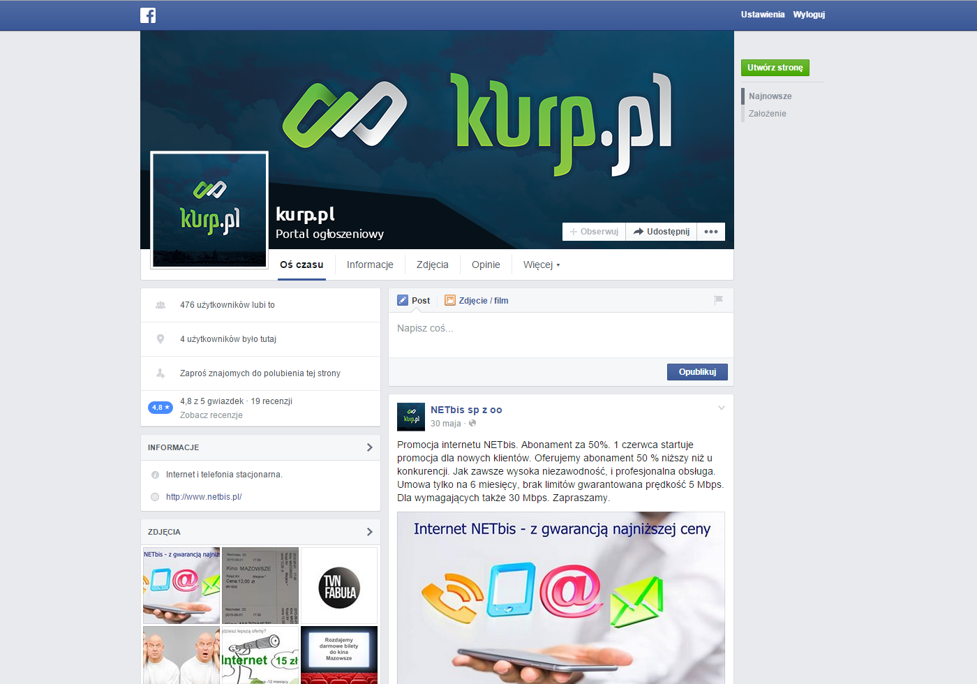 Wykonanie grafik reklamowych na fanpage Facebook.
