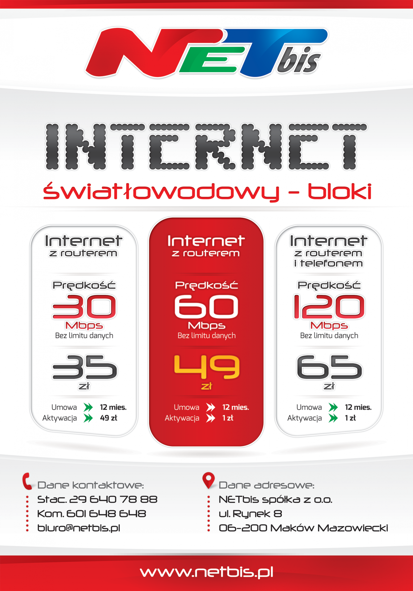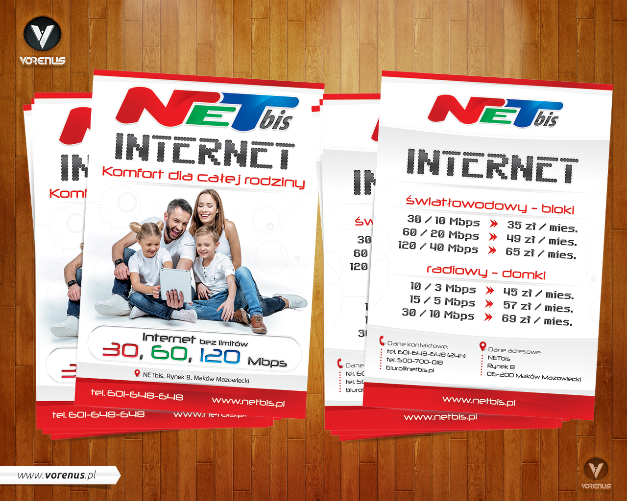 Projekt i wykonanie różnego rodzaju materiałów graficznych promujących działalnośc firmy NETbis.