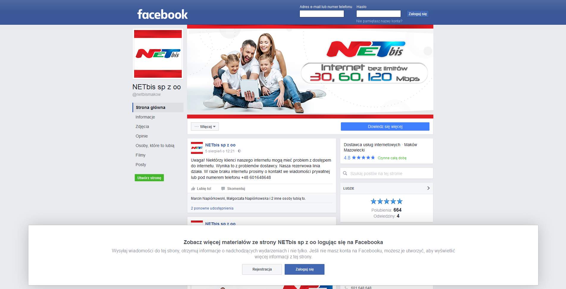 Oferta, Promocje, iBOK NETbis, Pliki, Formularz kontaktowy, Formularz zamówienia internetu.