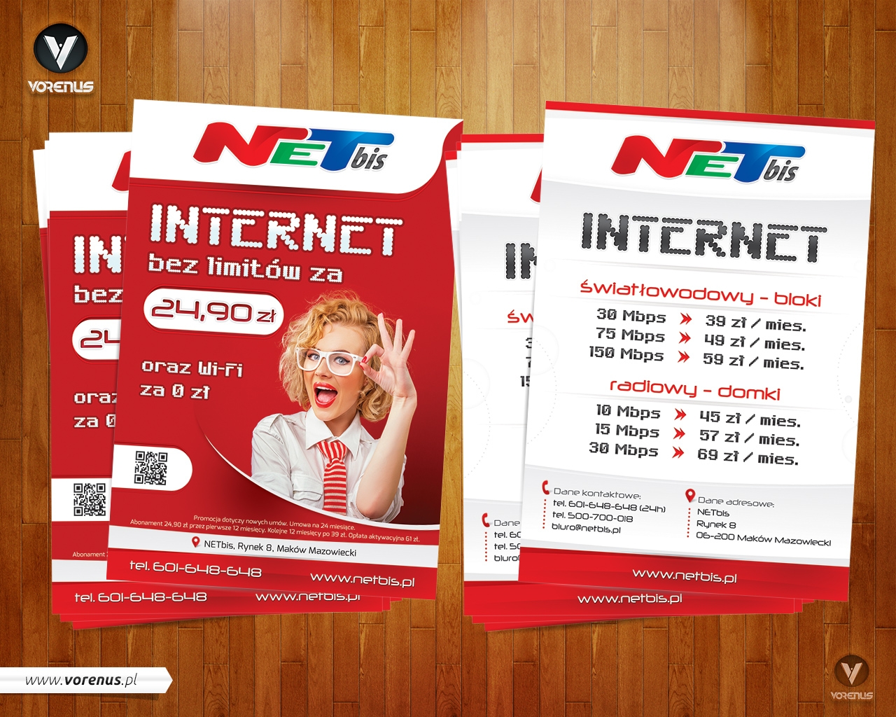 • NETbis - Internet bez limitów. Ulotka A5 cennik ISP. Projektowanie reklam VORENUS.pl