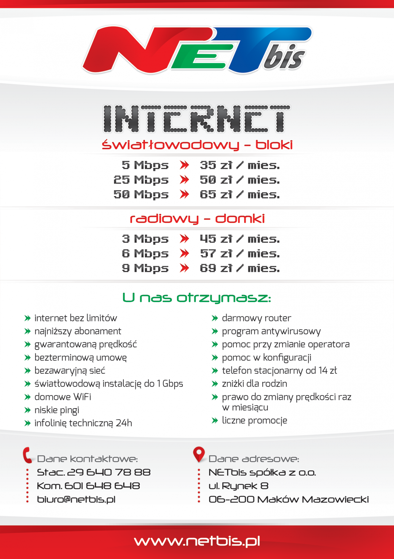 Kampania reklamowa dla firmy NETbis, dosatwcy Internetu światłowodowego w Makowie Mazowieckim.