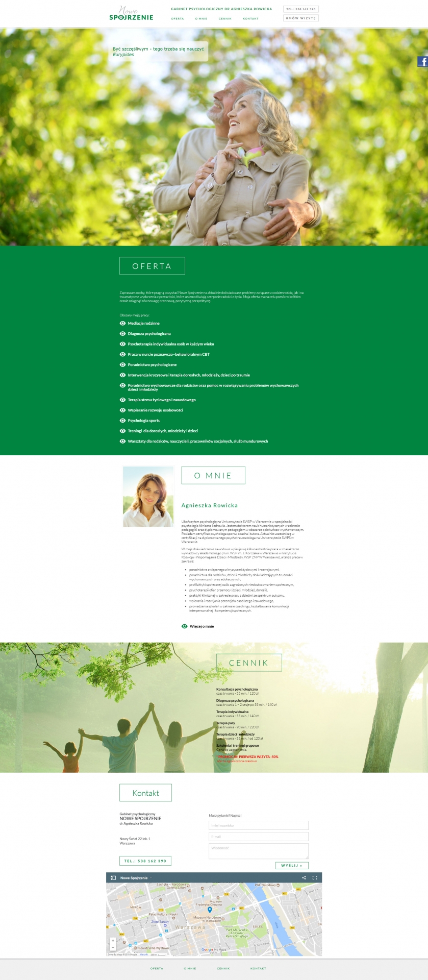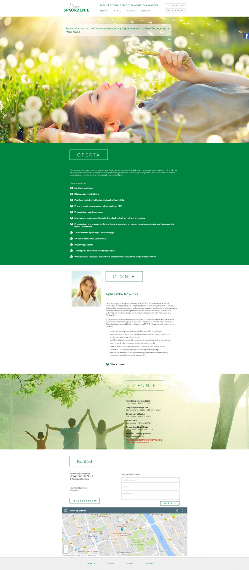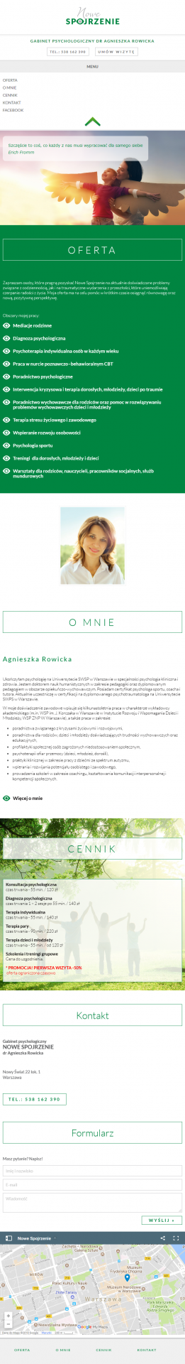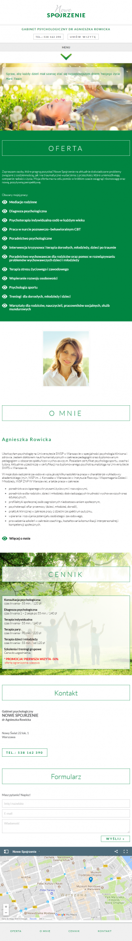 - Wykonanie strony internetowej dla Gabinetu Psychologicznego "Nowe Spojrzenie" Dr Agnieszki Rowickiej