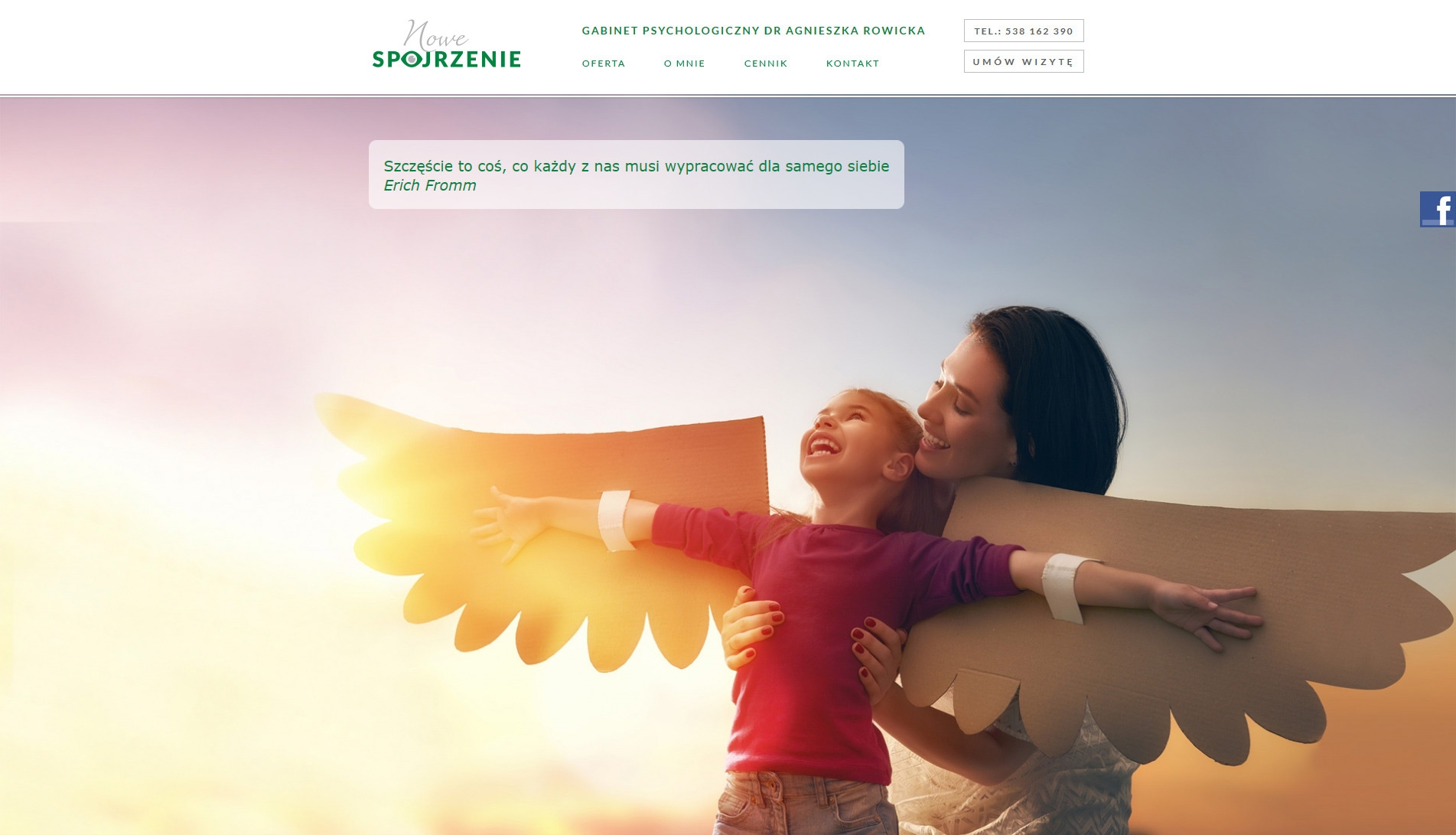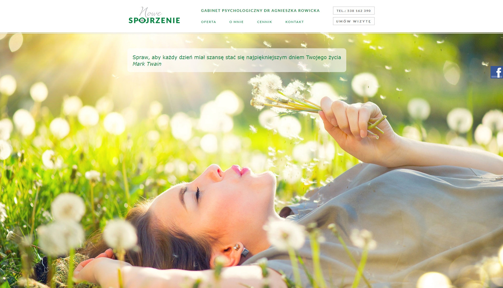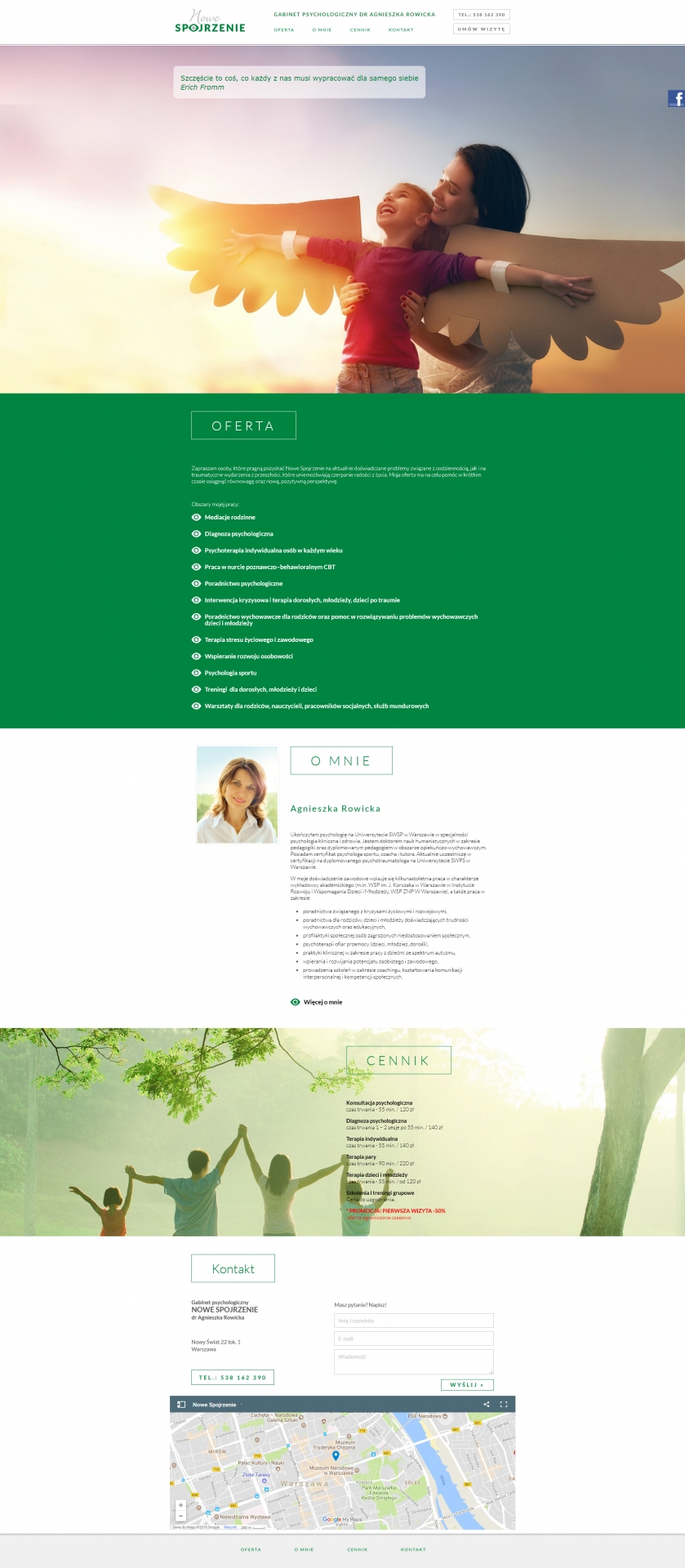 - Wykonanie strony internetowej dla Gabinetu Psychologicznego "Nowe Spojrzenie" Dr Agnieszki Rowickiej