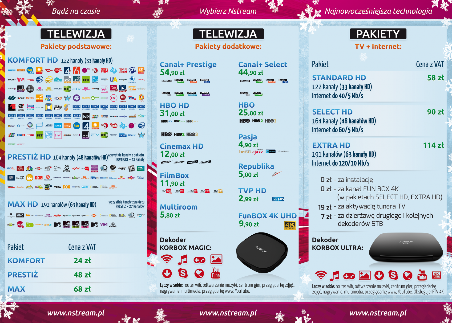 Prezentacja listy kanałów wraz z ich ikonami. Pakiety telewizyjne podstawowe i dodatkowe. Pakiety premium.