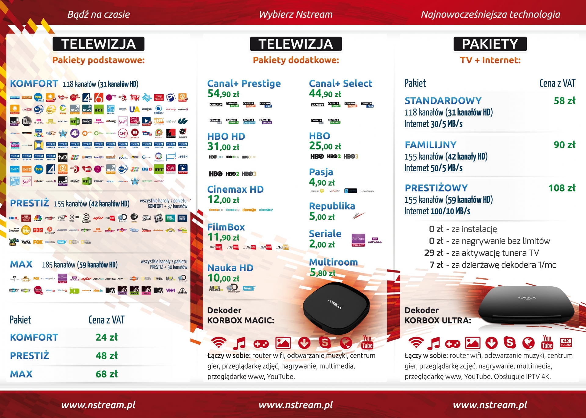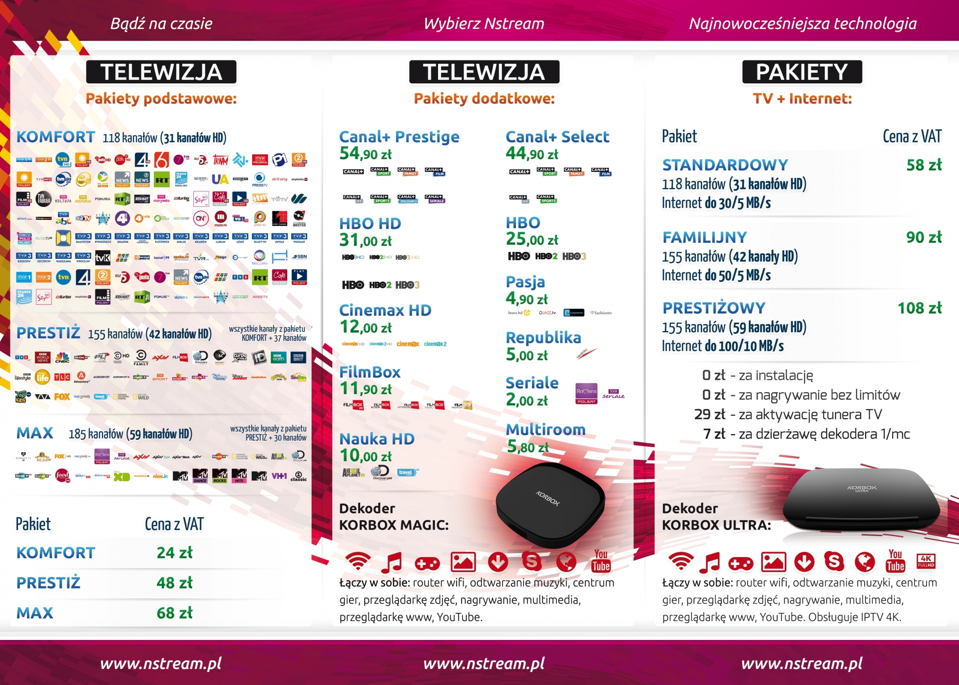 Prezentacja listy kanałów wraz z ich ikonami. Pakiety telewizyjne podstawowe i dodatkowe. Pakiety premium.