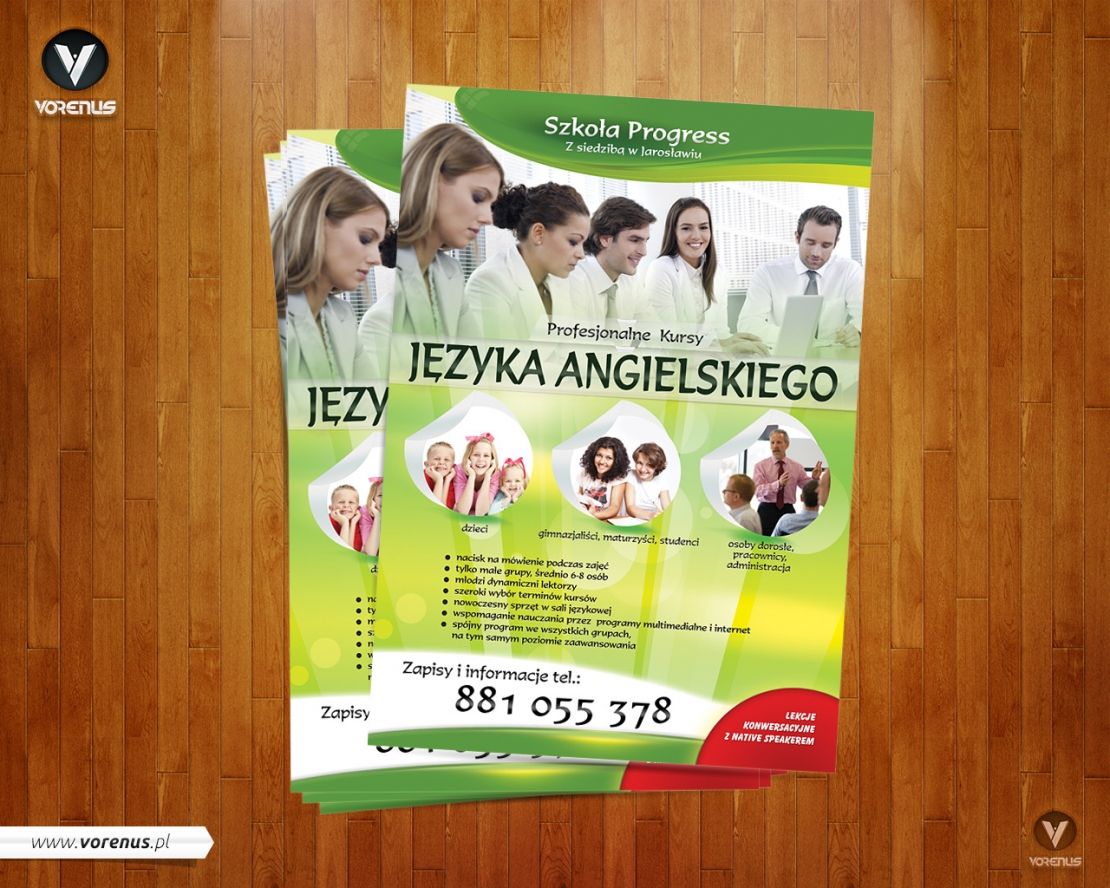 Projekt plakatu w formacie A2 dla szkoły językowej Progress.