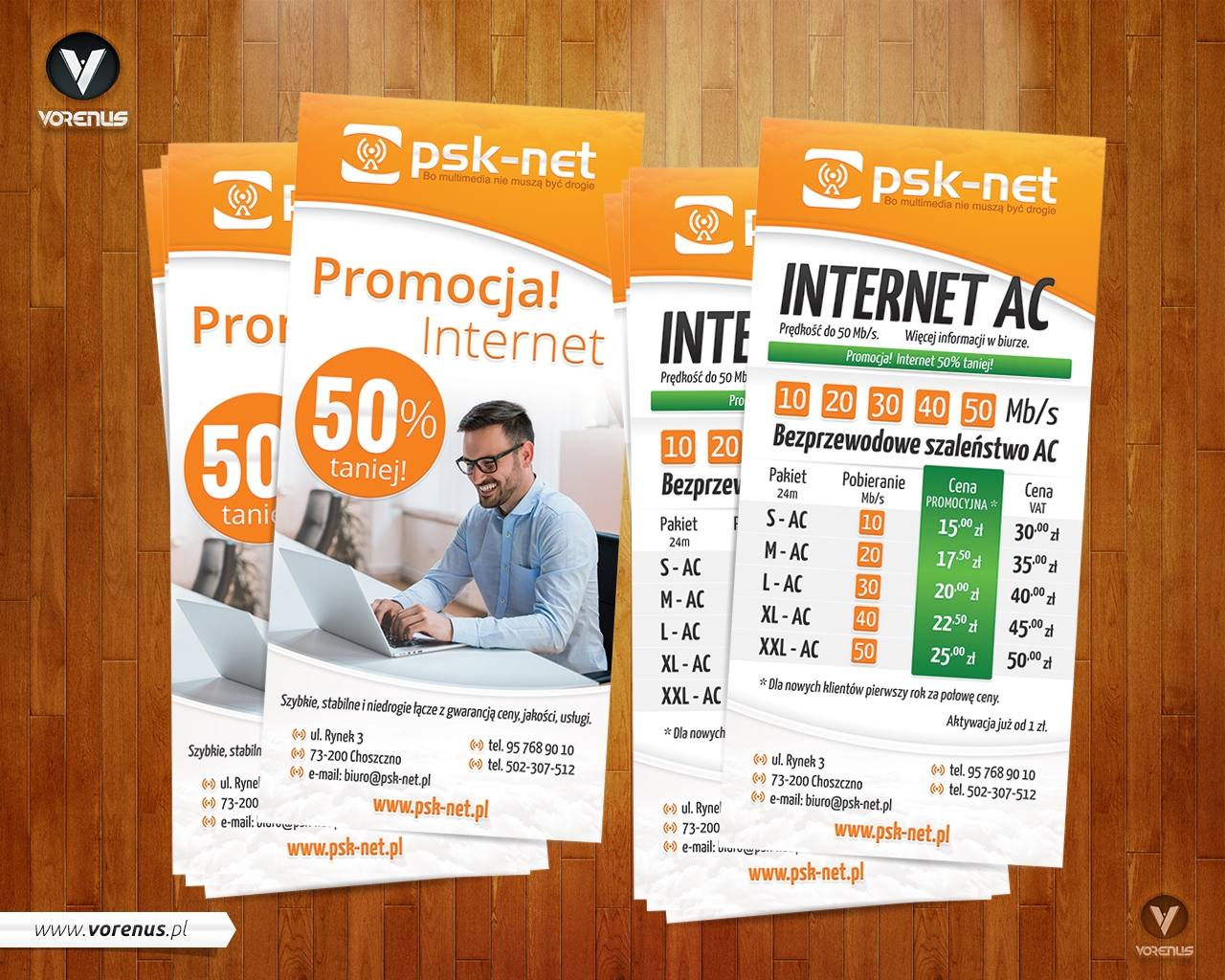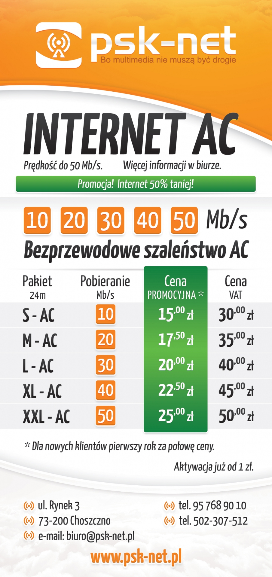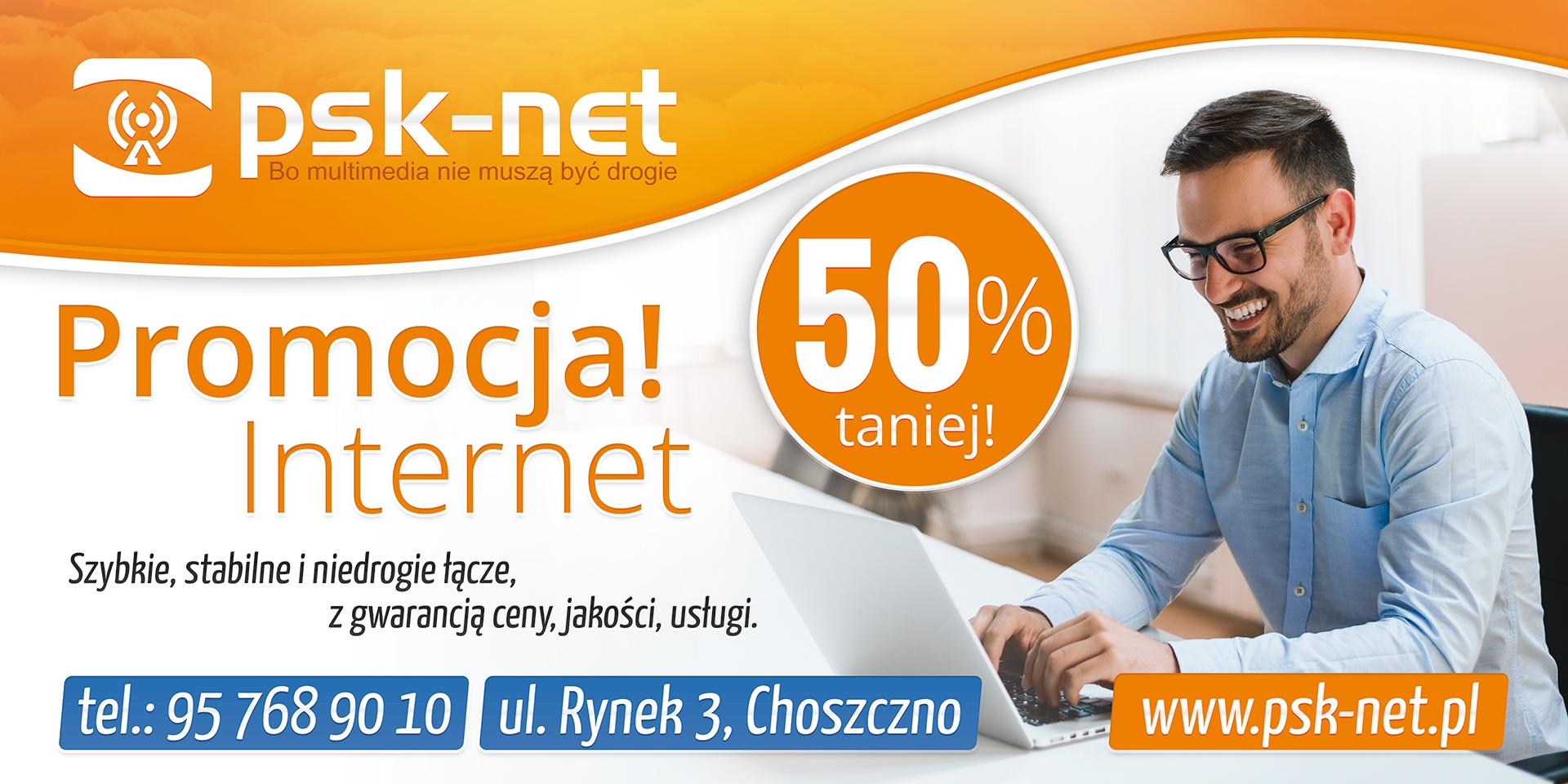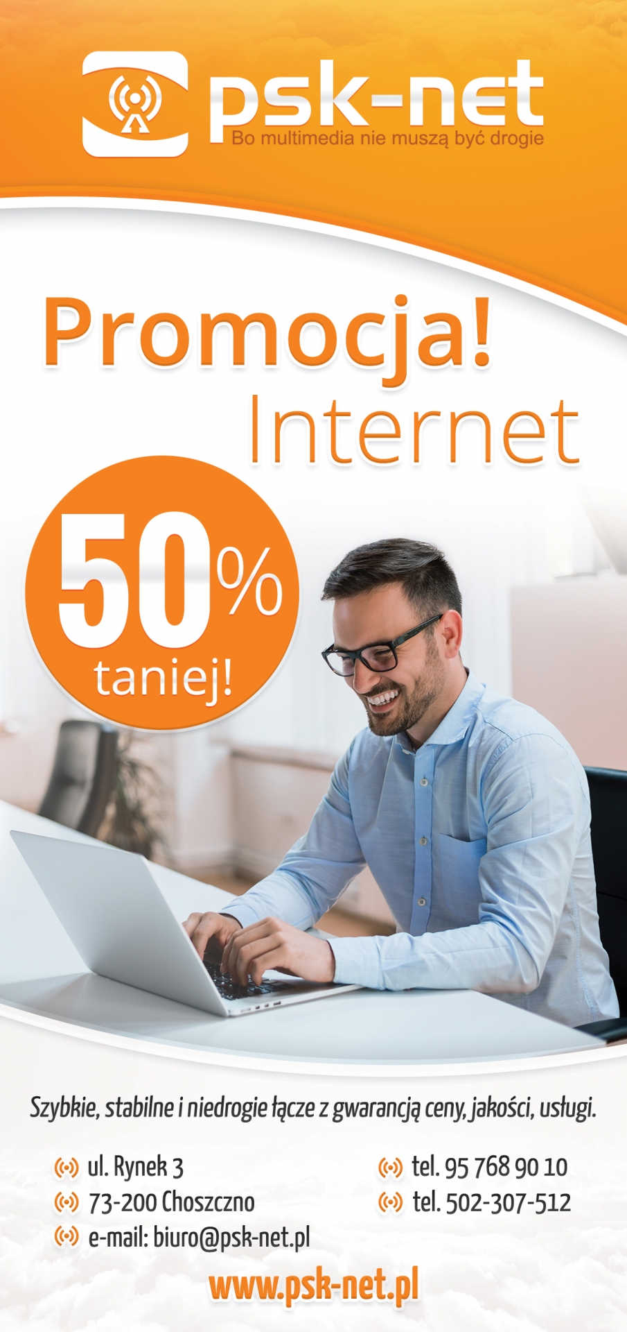 Kampania reklamowa dla firmy PSK-NET, dostawcy Internetu na terenie powiatu choszczeńskiego. Promocja -50% na Internet.