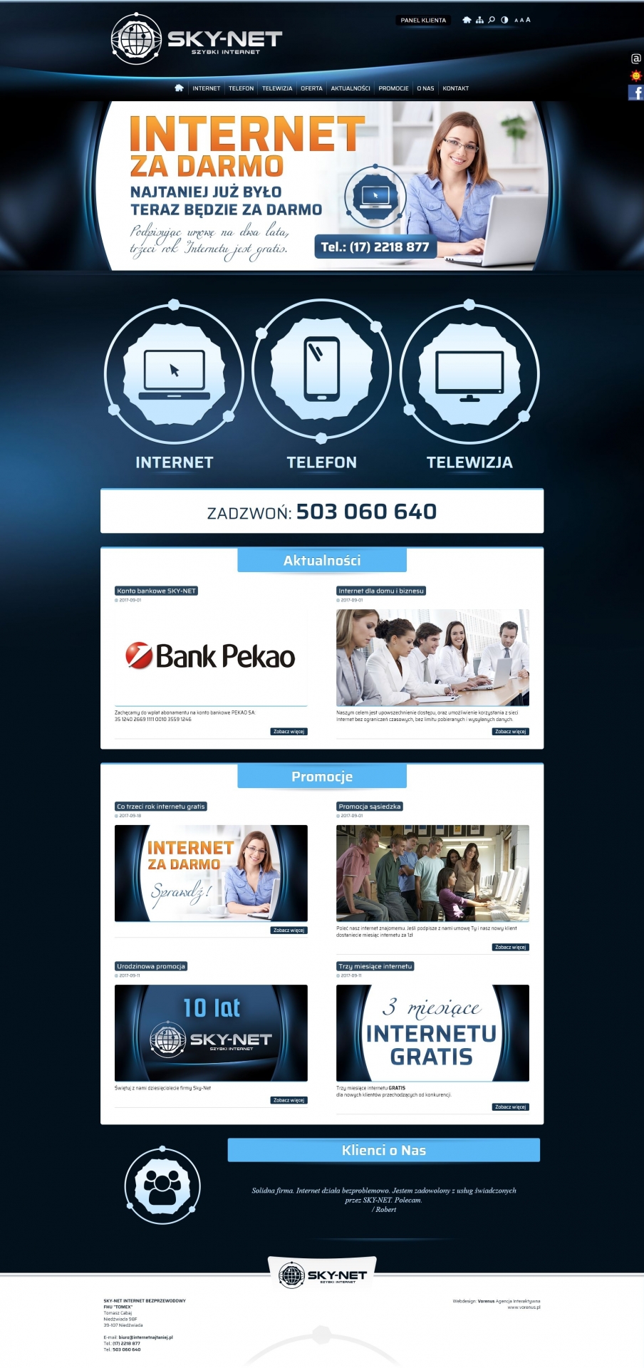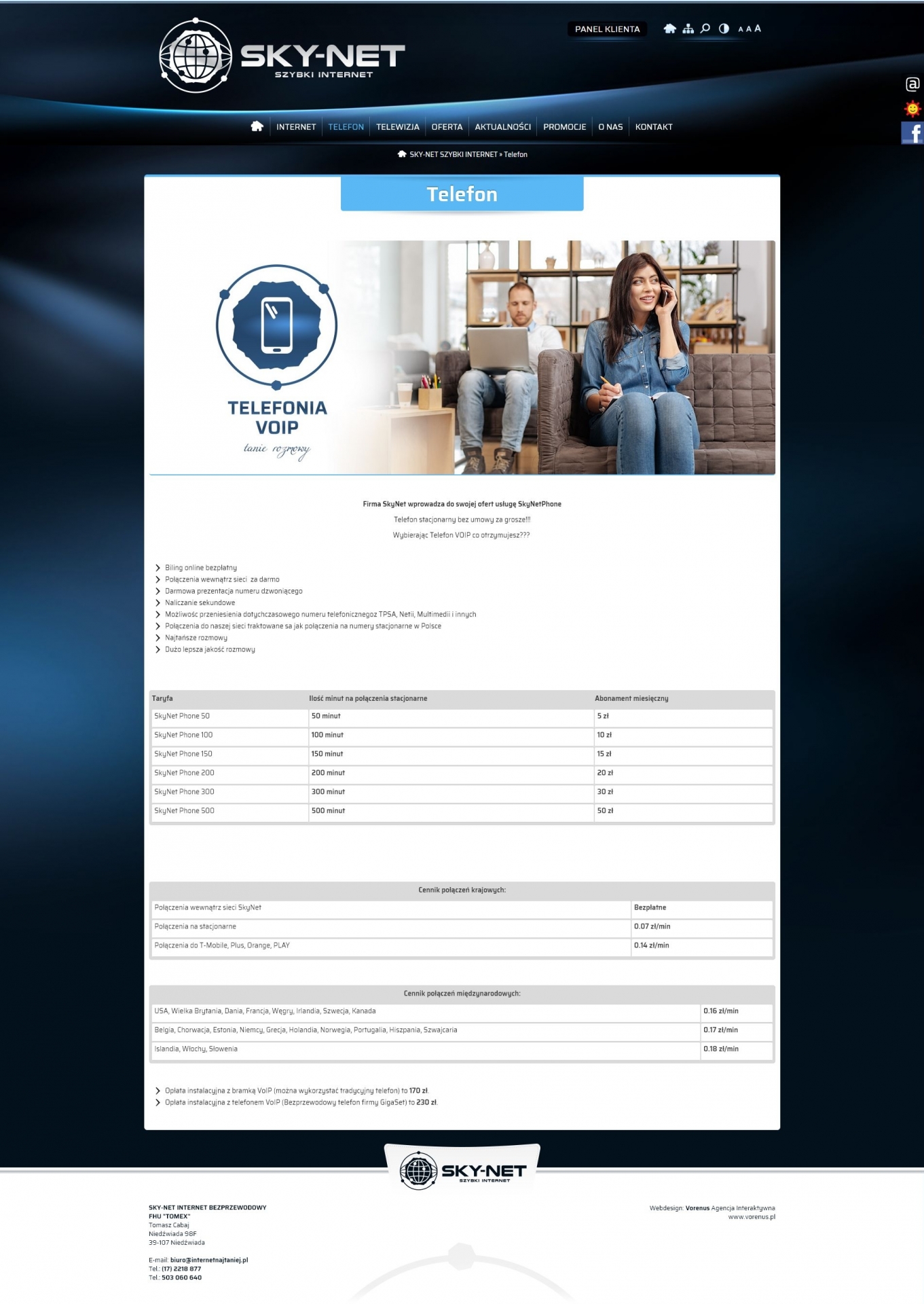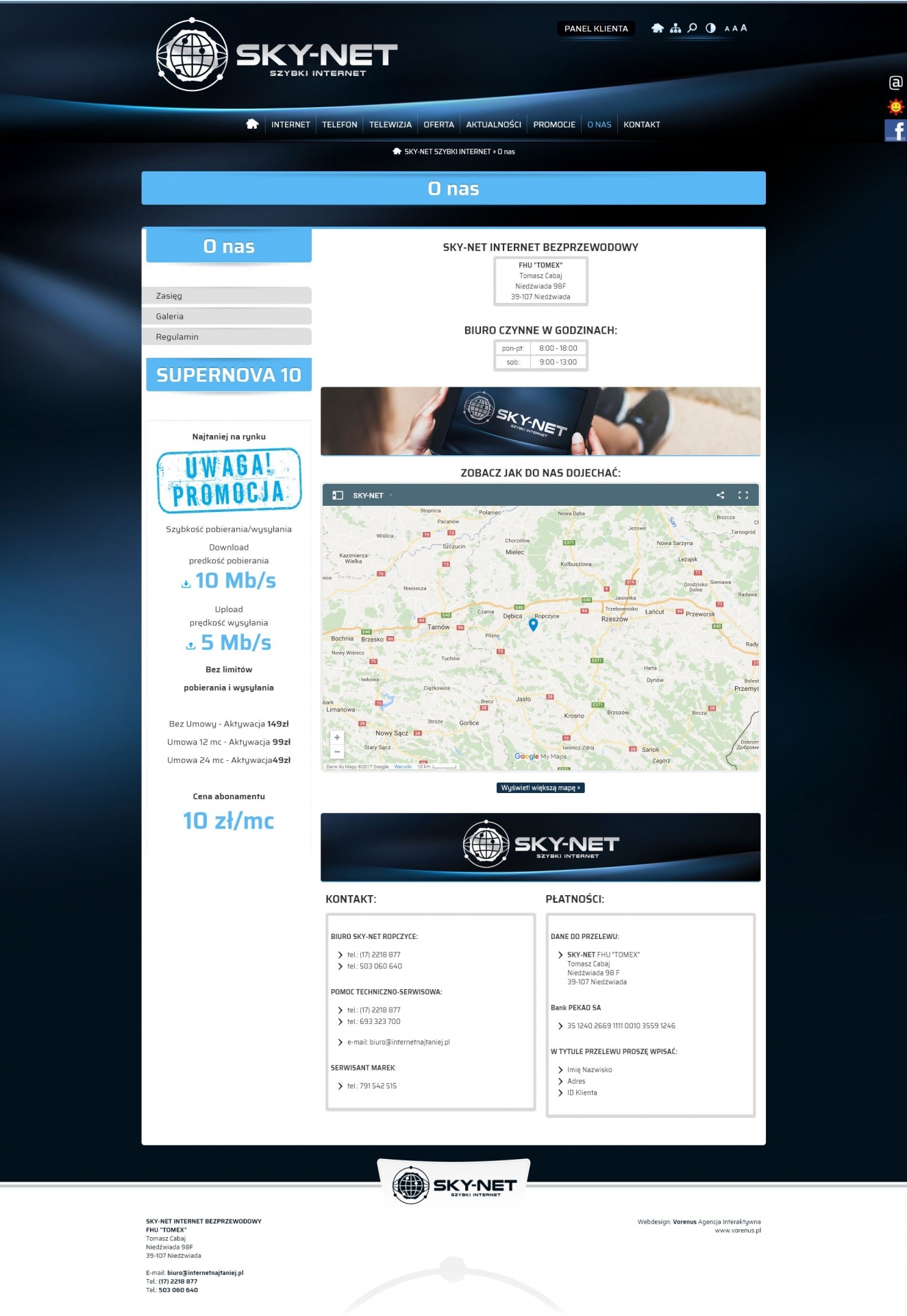 - Projekt i wykonanie strony internetowej dla firmy SKY-NET.