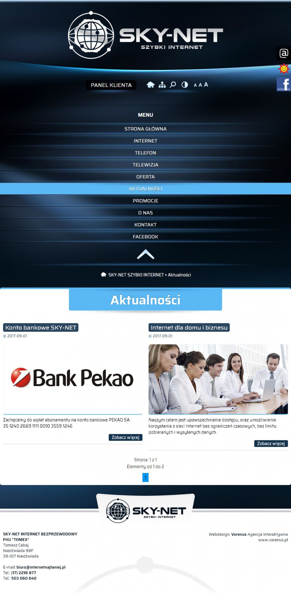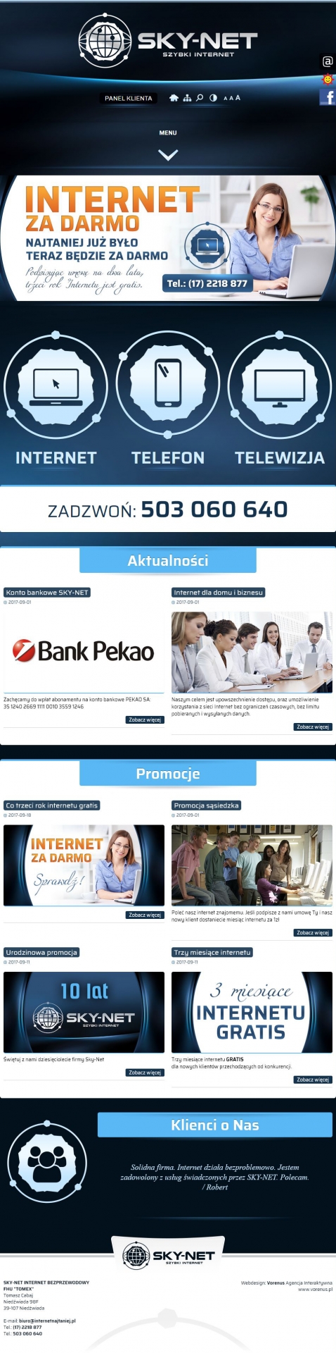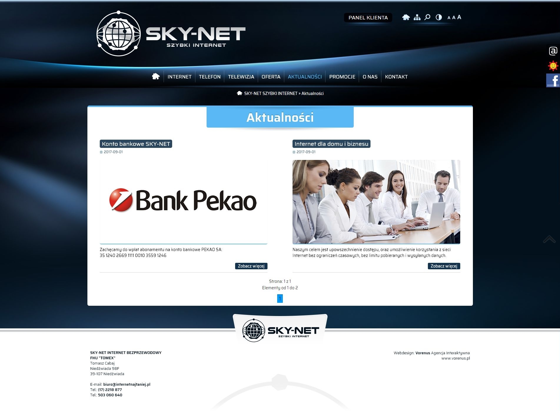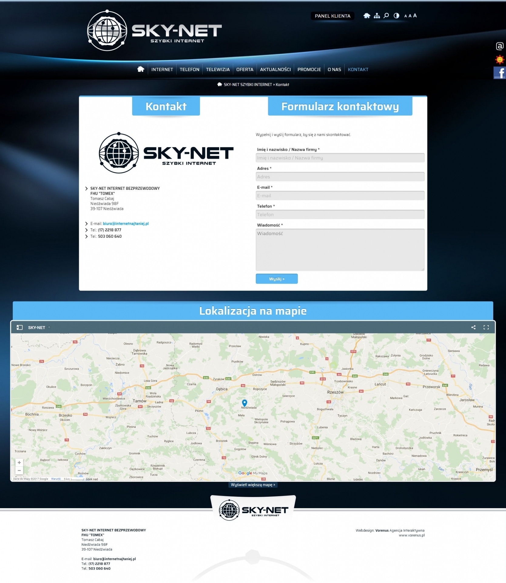 - Projekt i wykonanie strony internetowej dla firmy SKY-NET.