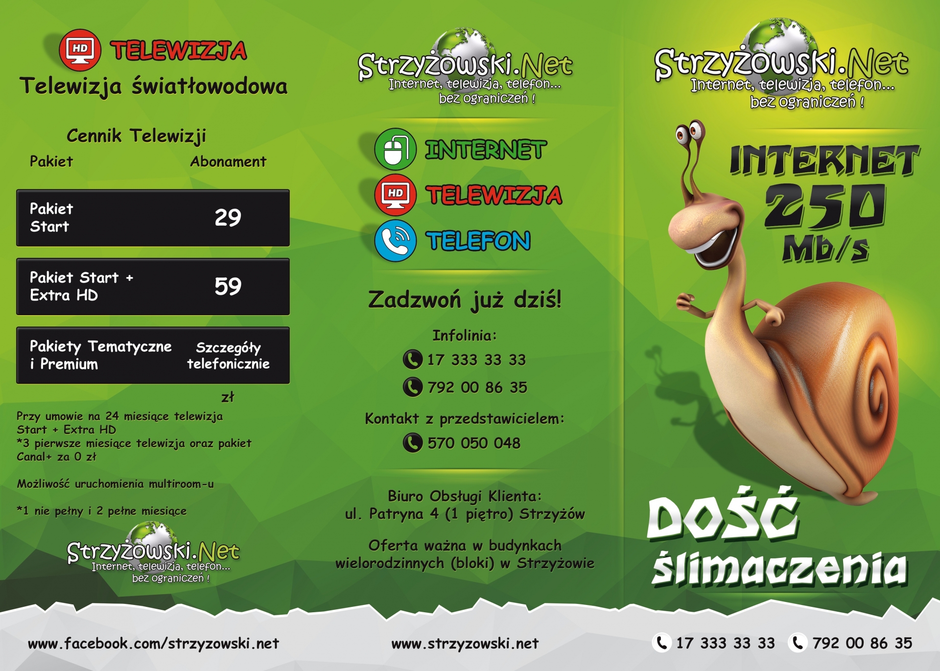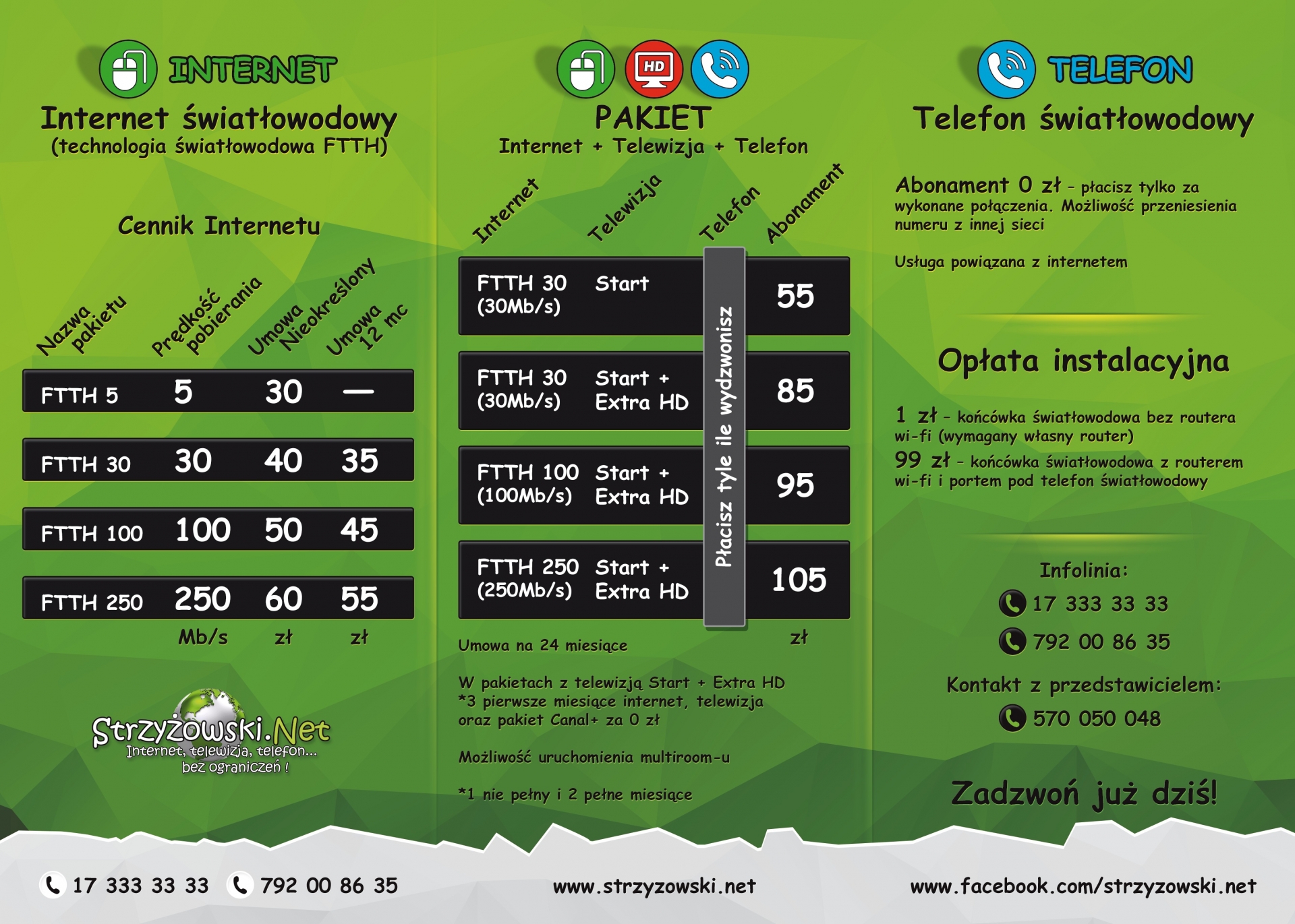 Strzyżowski.NET jest dostawcą takich usług jak: Internet, Telewizja HD i Telefon. Firma Strzyżowski.NET jest nowoczesną siecią bezprzewodową, która dzięki wykorzystaniu najnowocześniejszych technik telekomunikacyjnych jest w stanie dostarczyć najwyższej jakości łącze internetowe dla Twojego domu lub Twojej firmy. Działa na terenie Strzyżowa i okolic.