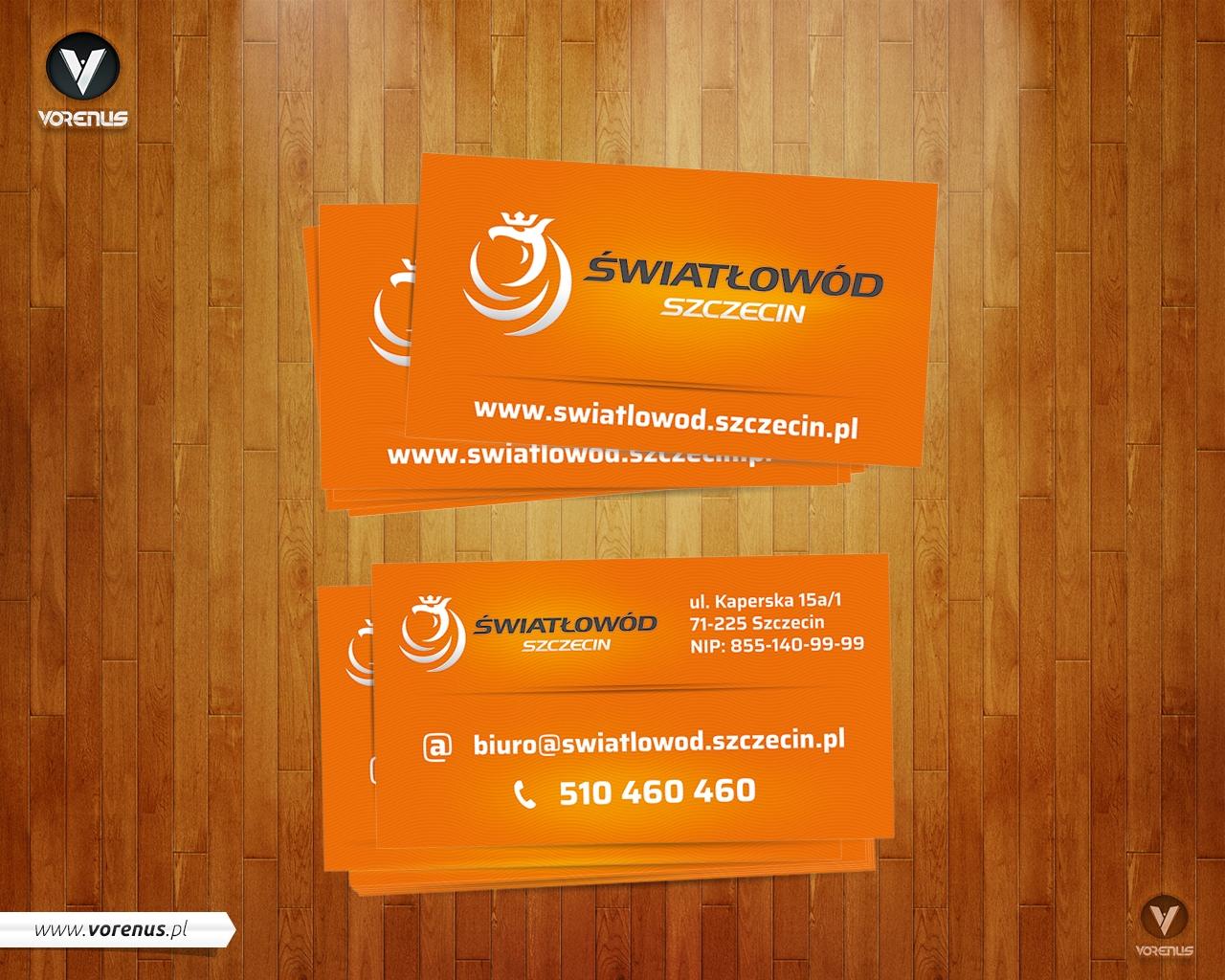 • ŚWIATŁOWÓD SZCZECIN - Prezentacja wizytówek 90x50mm. Przód firmowa