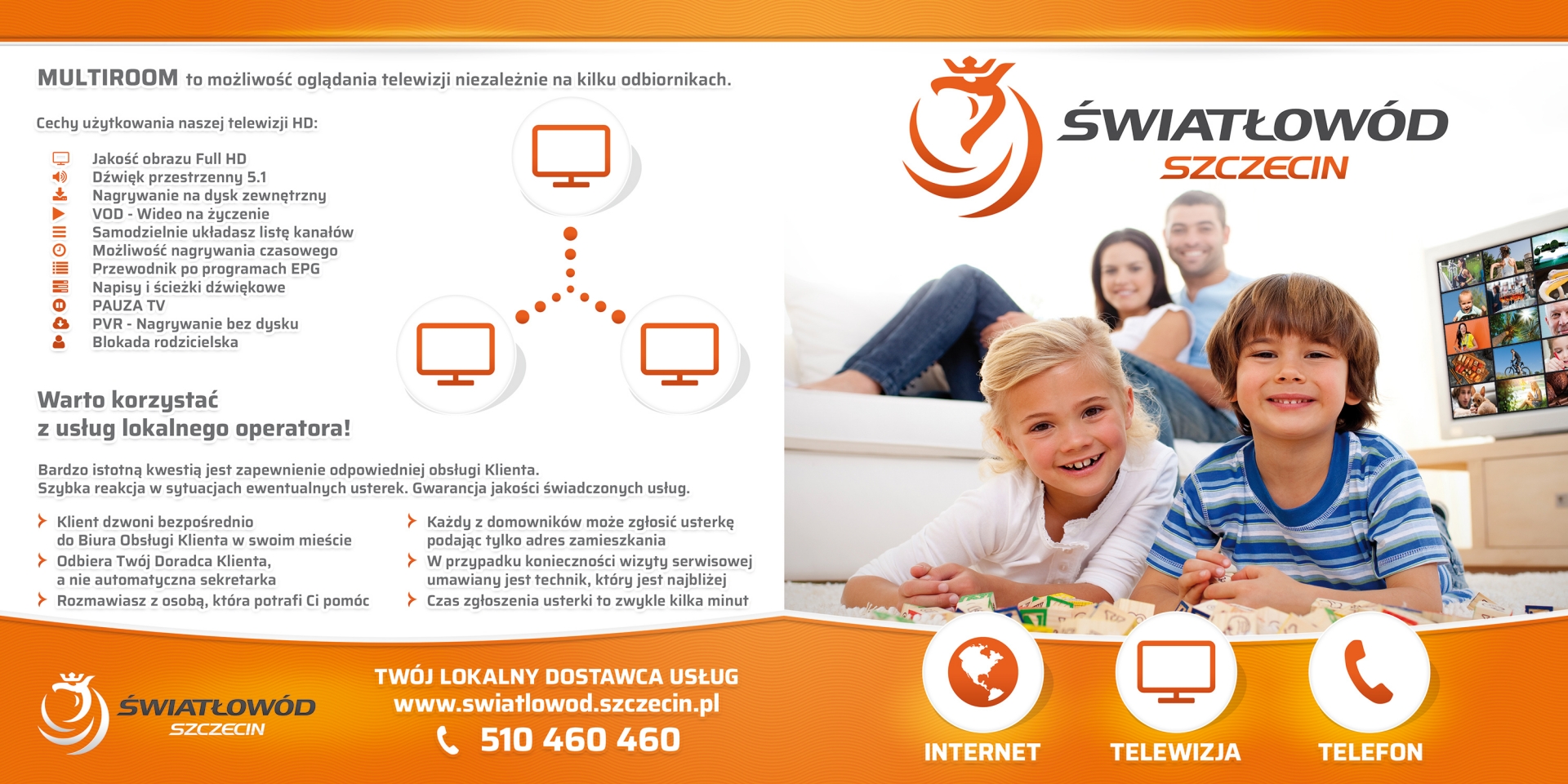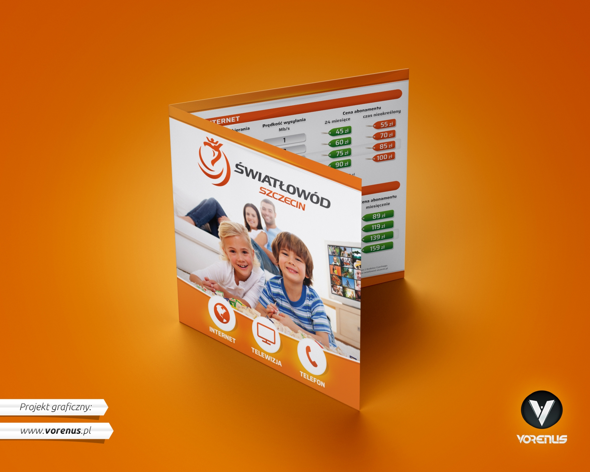 • ŚWIATŁOWÓD SZCZECIN - Ulotka składana 20x20cm czterostronna. Internet. Projekt VORENUS Agencja Interaktywna
