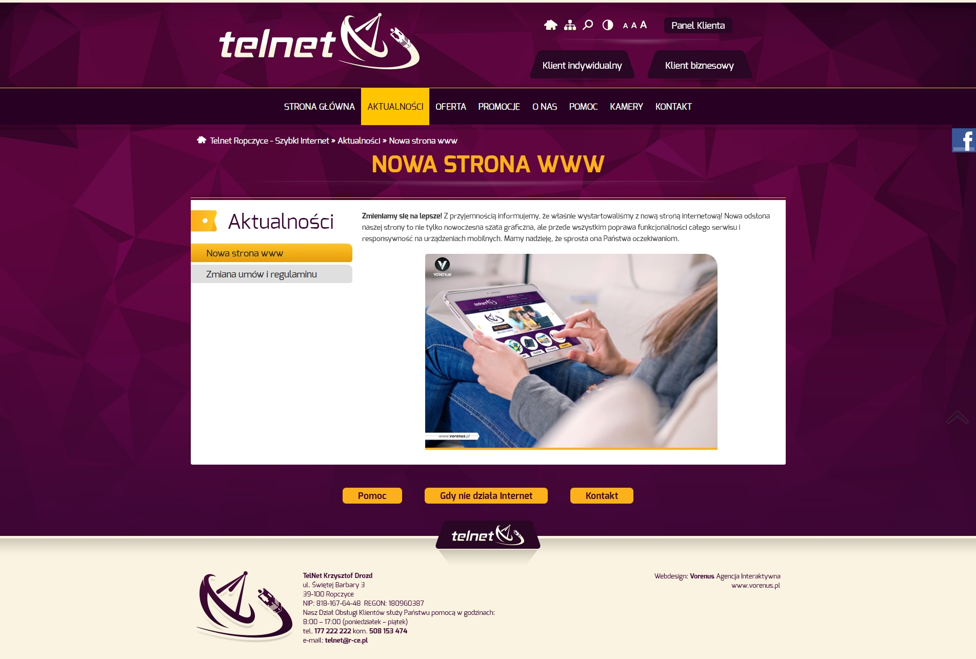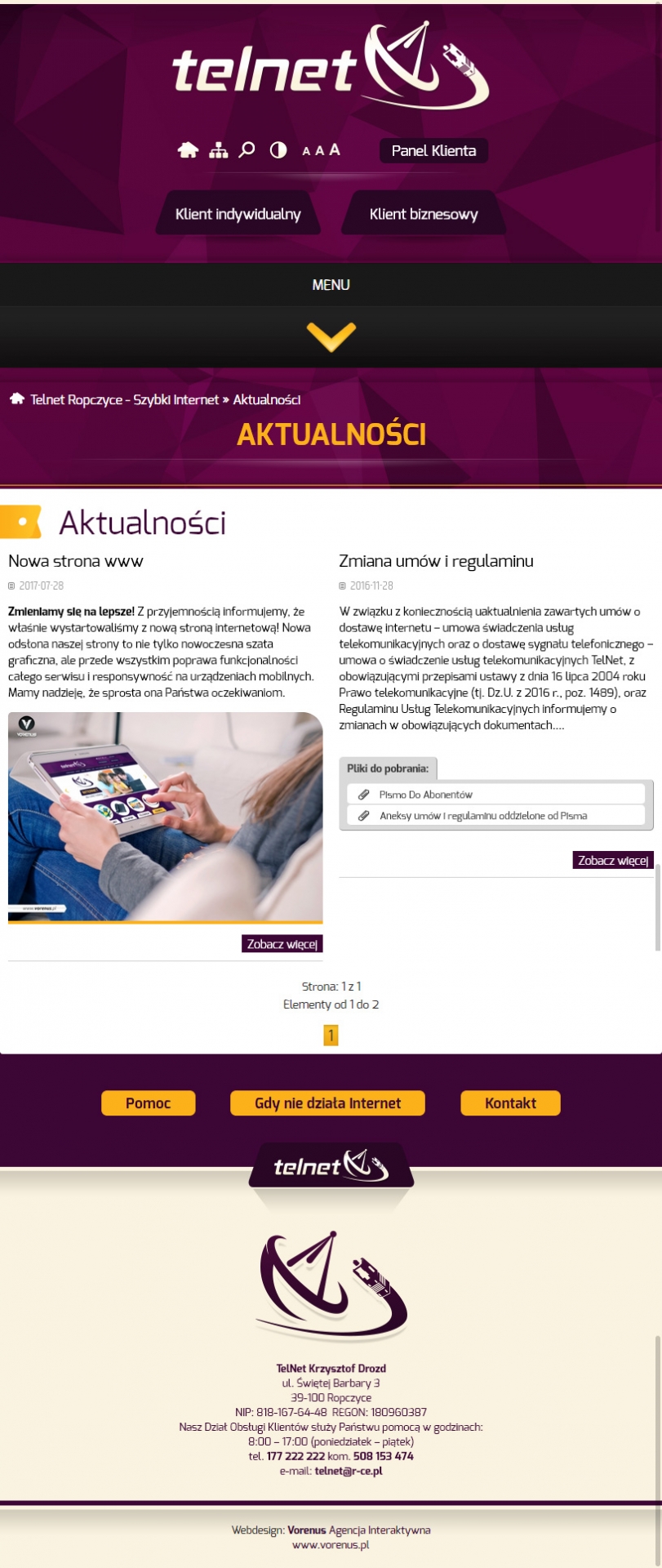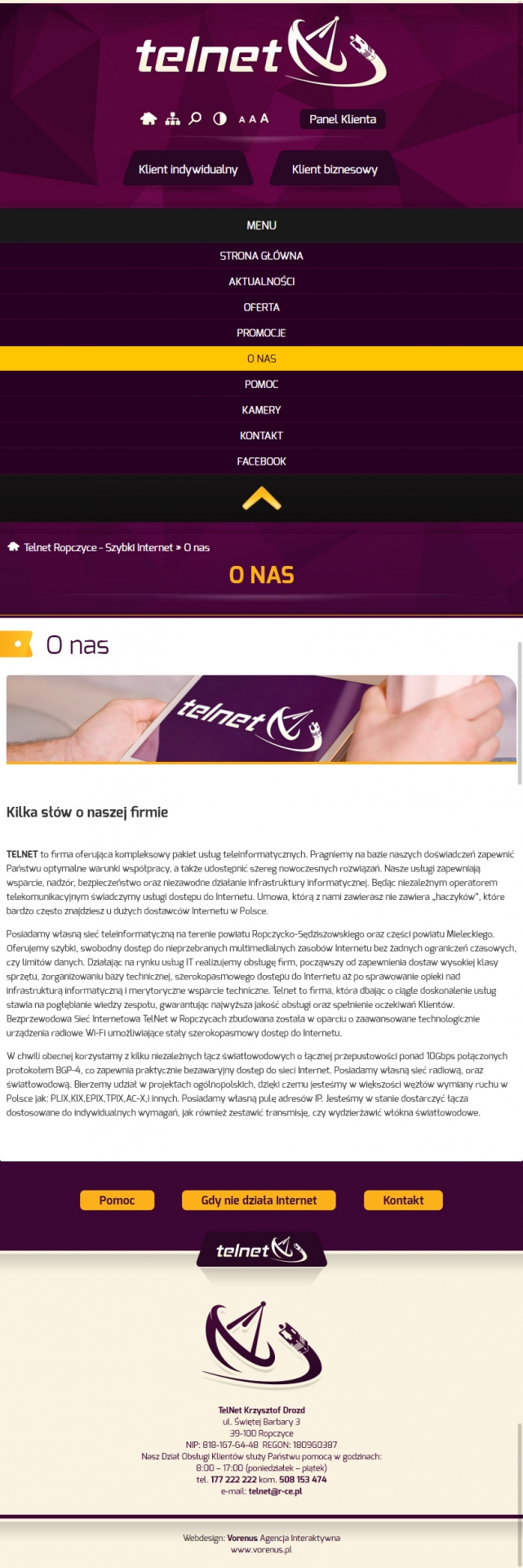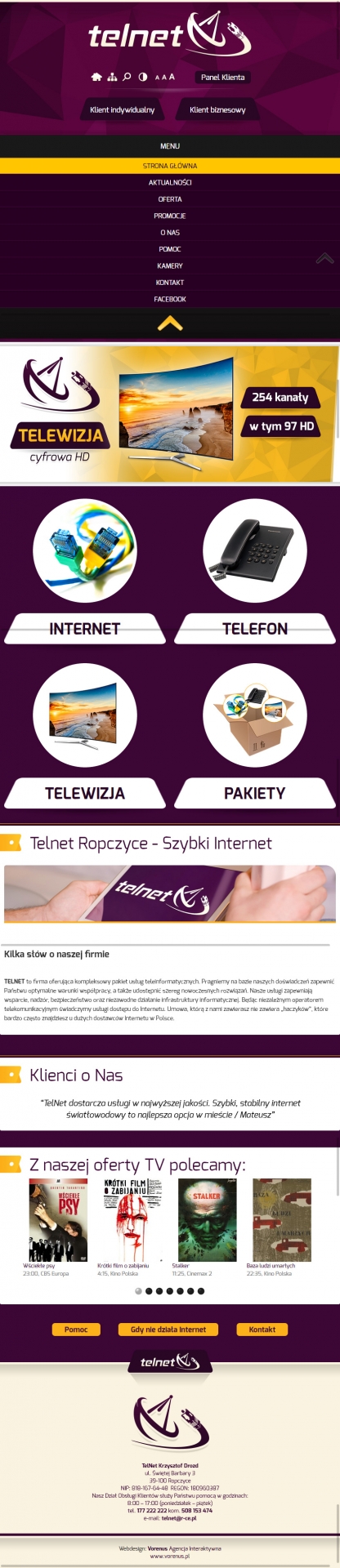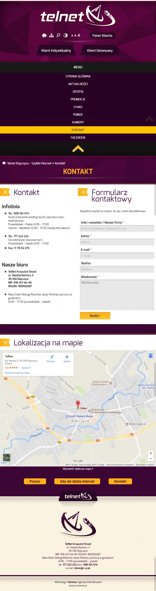 - Projekt graficzny i wykonanie mobilnej strony internetowej TELNET.