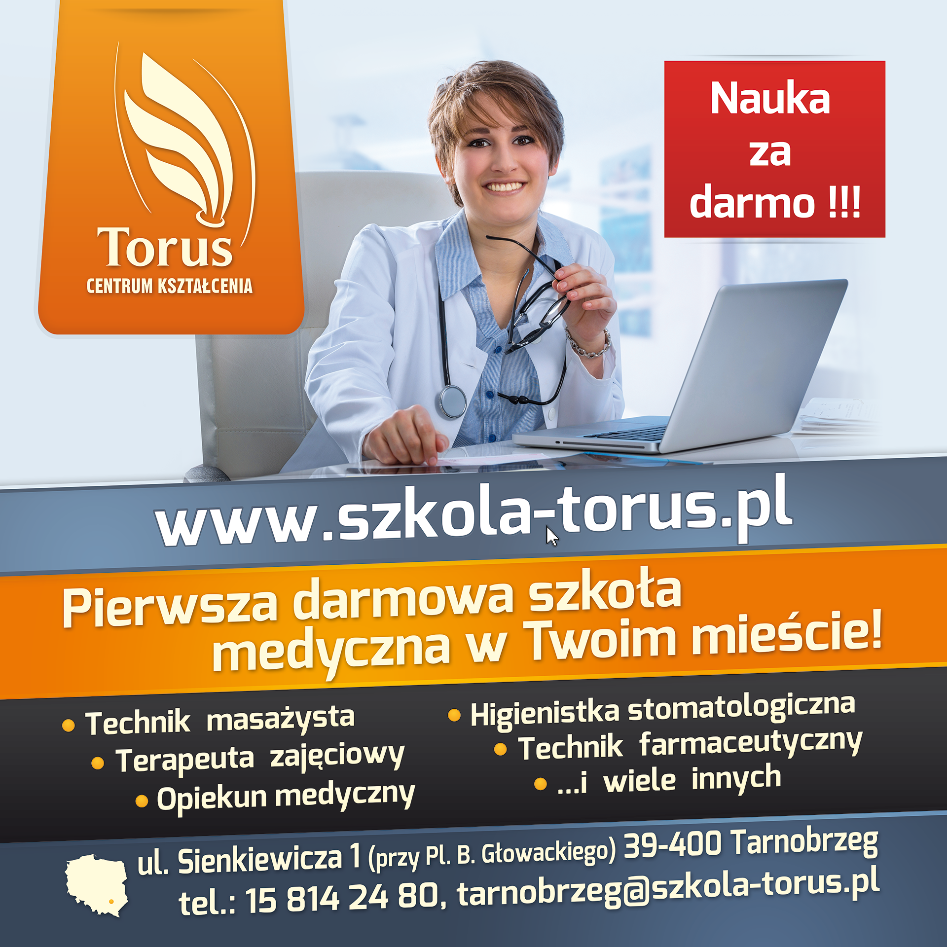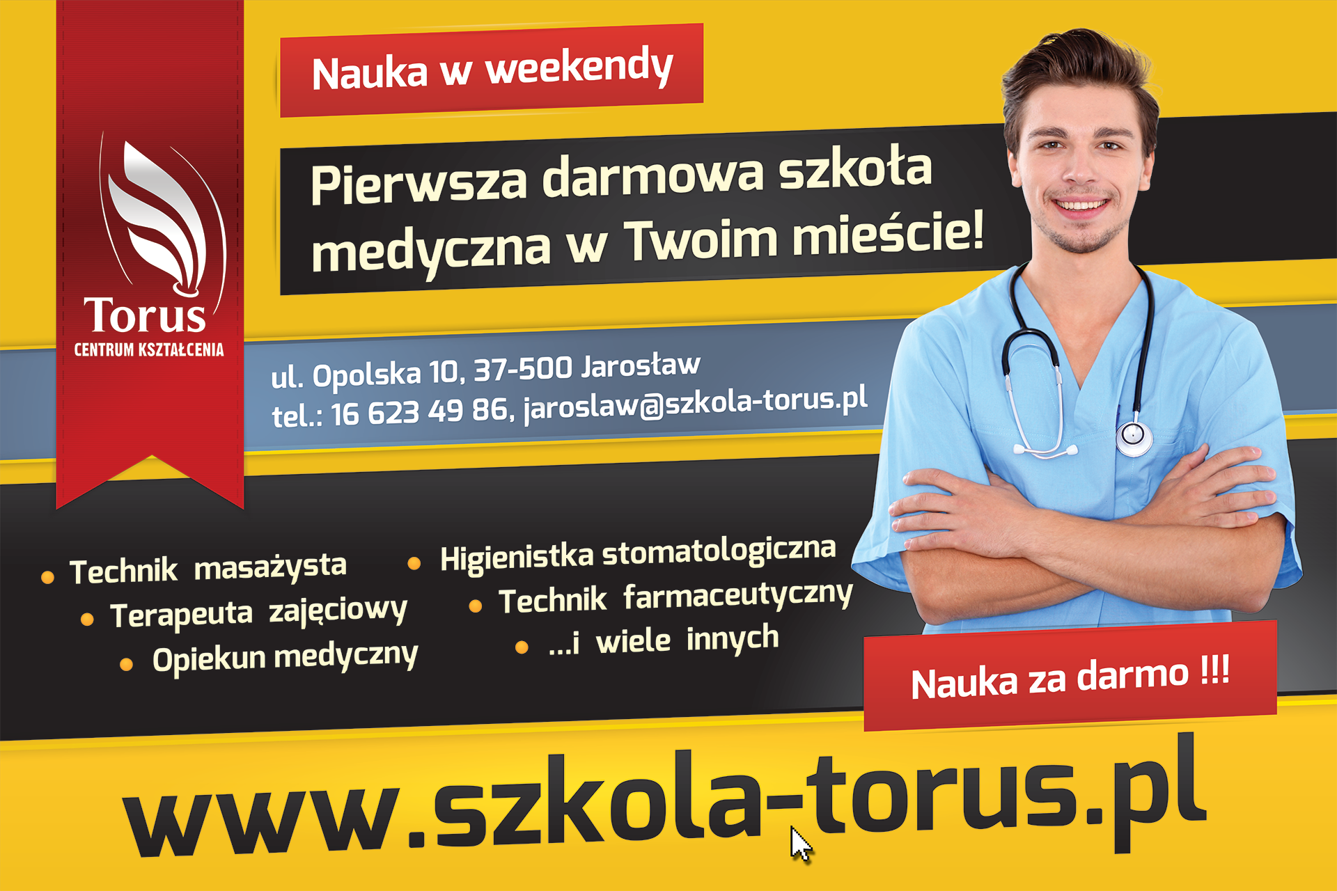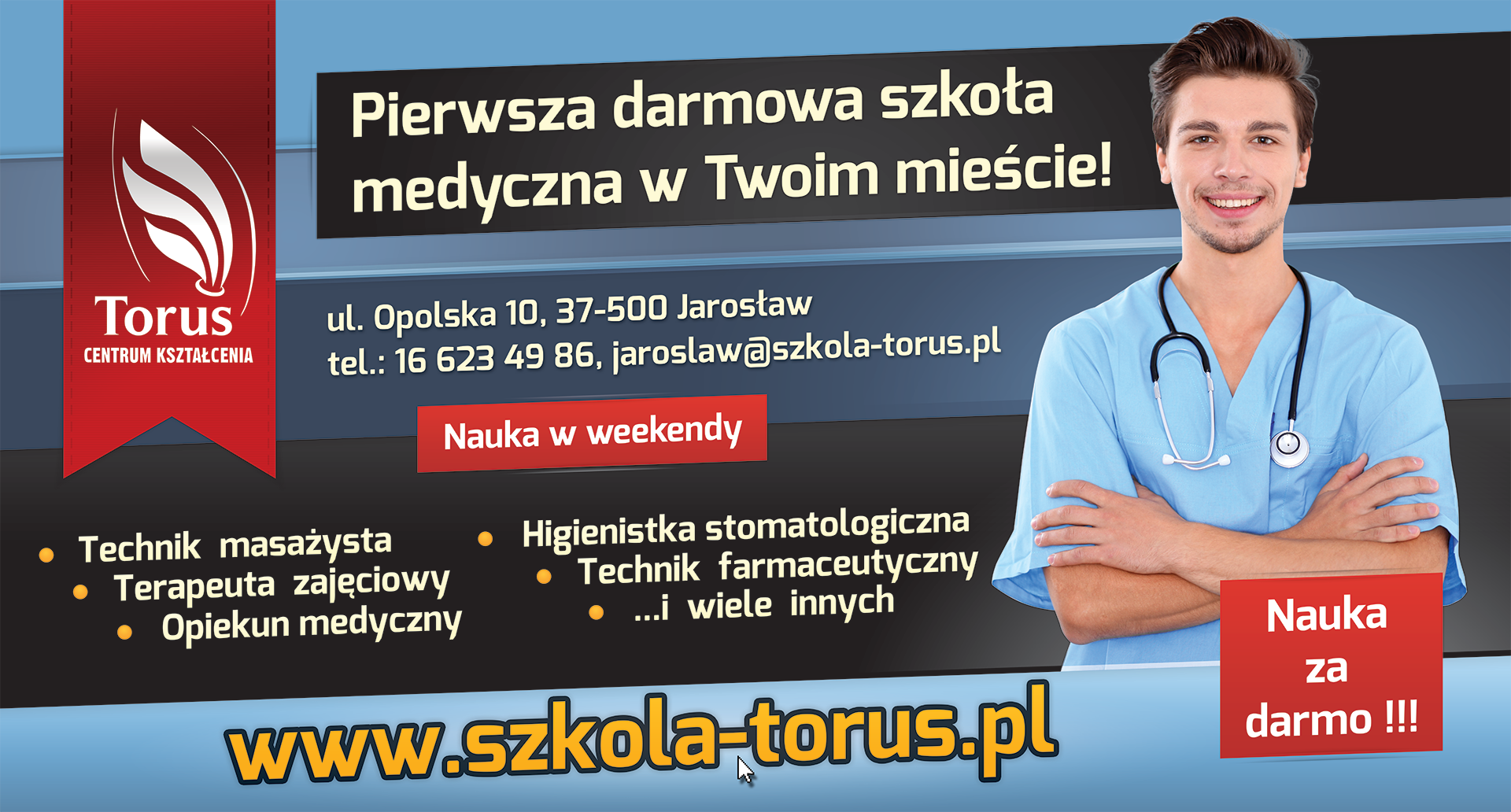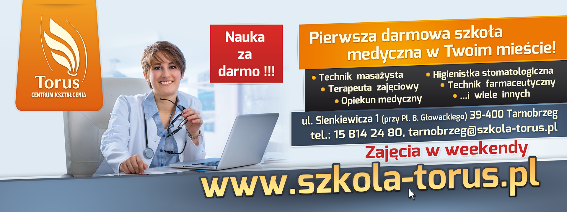Bannery wielkoformatowe reklamujące Szkoły Medyczne TORUS