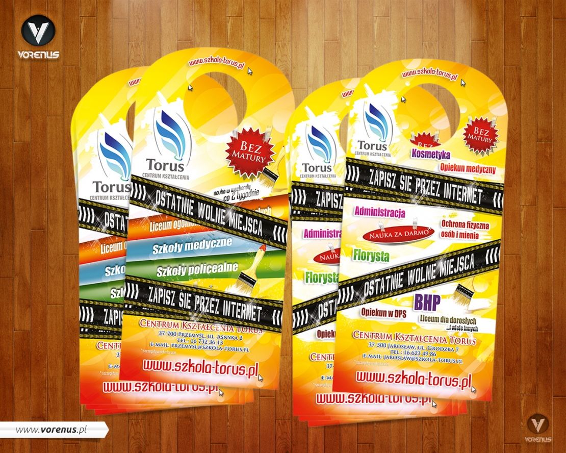 Projekt plakatów w formacje A2, ulotek w formacie 99x210mm, zawieszek na klamki.