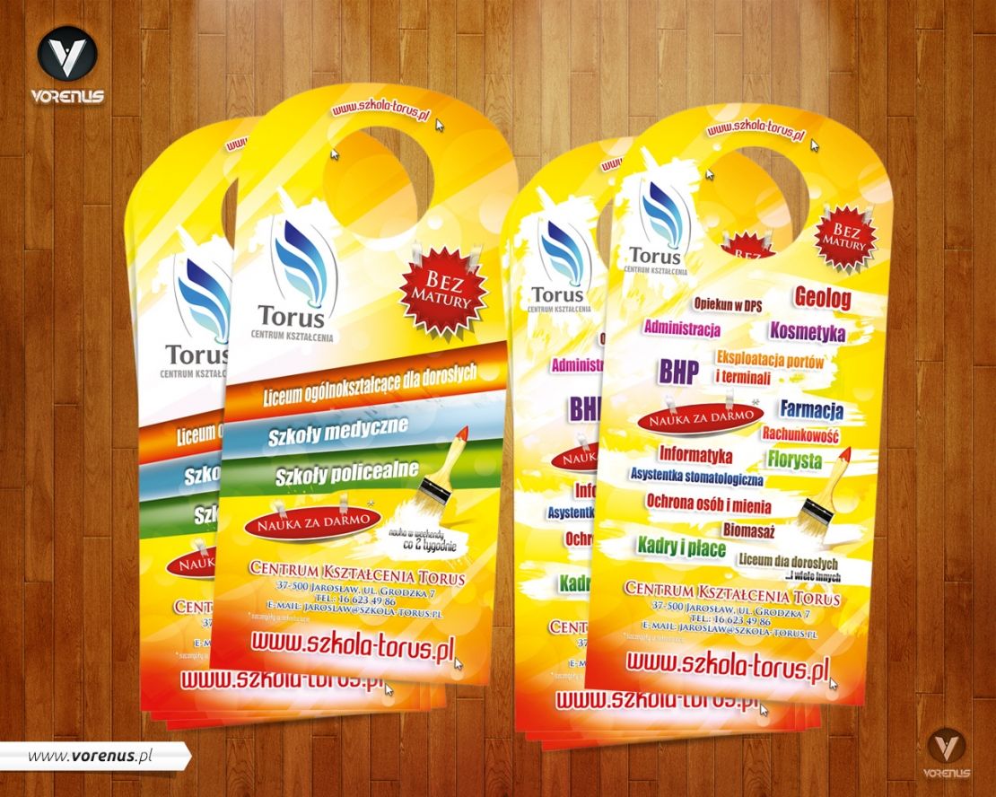 A2 posters project, 99x210mm flyers project, door handle adverts.