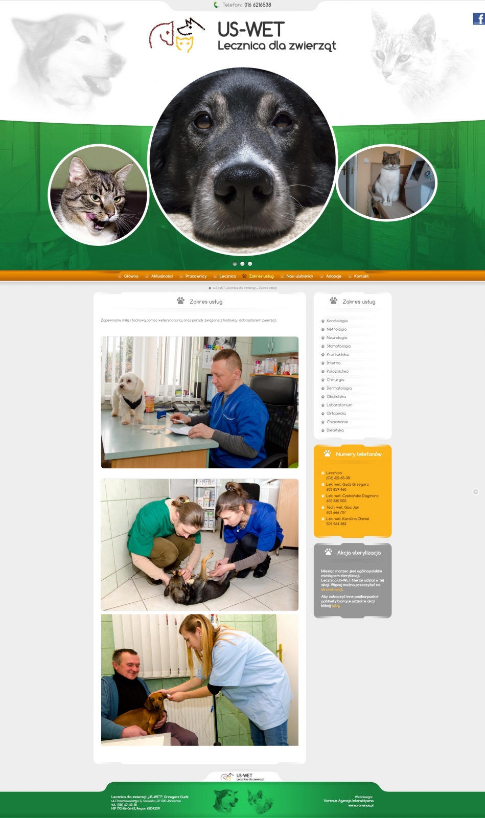 Lecznica dla zwierząt US-WET oferujemy szeroki wachlarz usług obejmujący: profilaktykę, diagnostykę i leczenie zwierząt towarzyszących i gospodarskich.