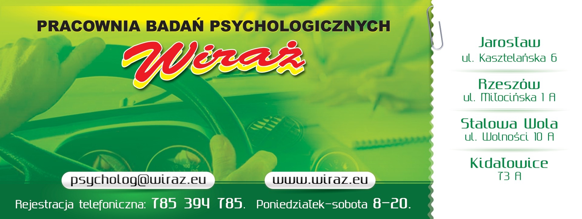 • WIRAŻ - Ośrodek Szkolenia Kierowców. Grafiki reklamowe na Facebook. Pracownia Badań Psychologicznych.