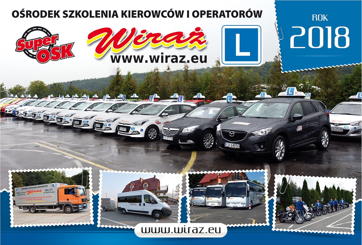 • WIRAŻ - Ośrodek Szkolenia Kierowców. Kalendarz trójdzielny na 2018 rok. Duży format. Szkoła nauki jazdy.