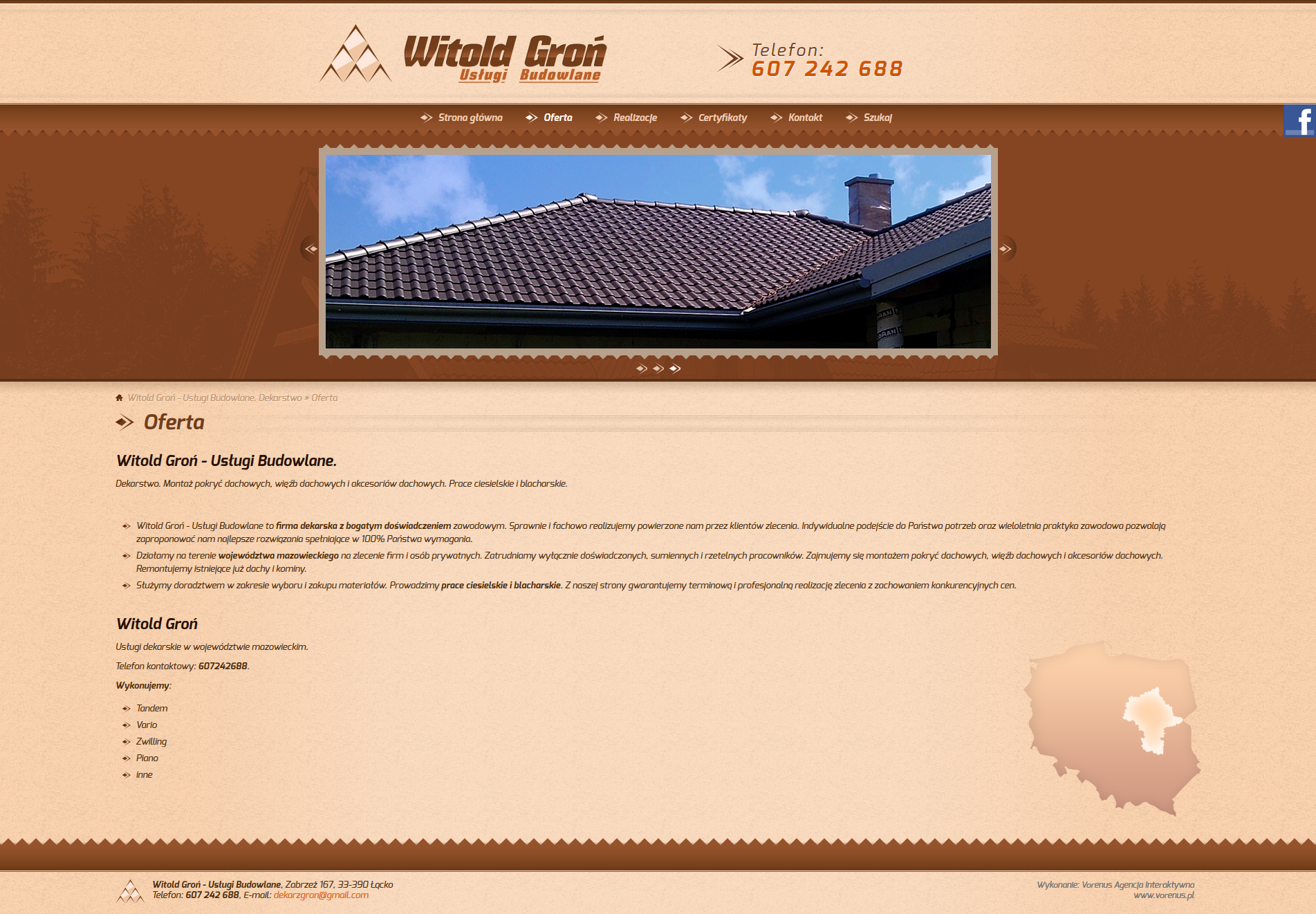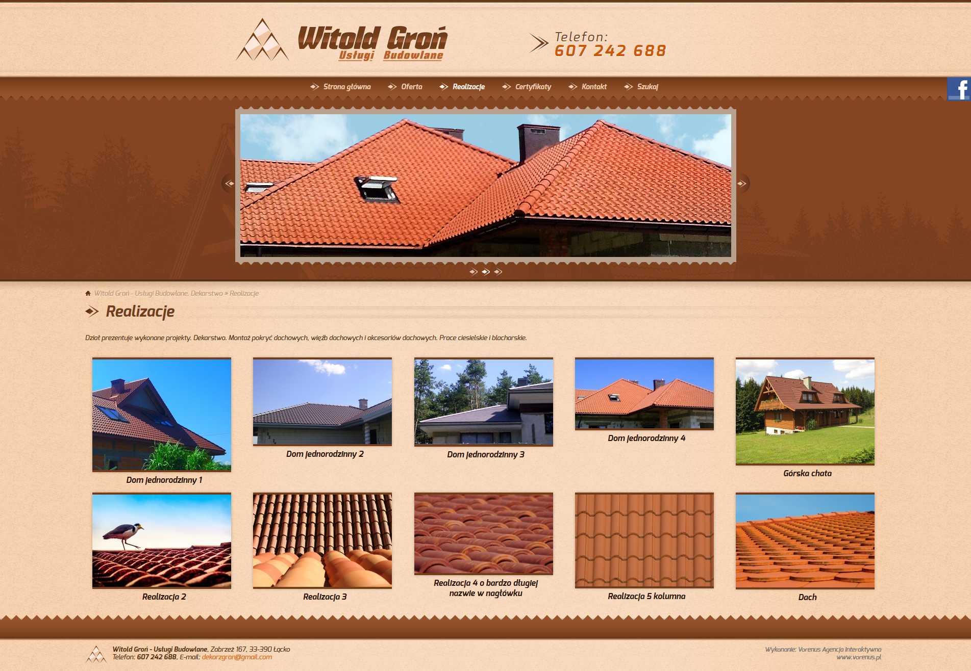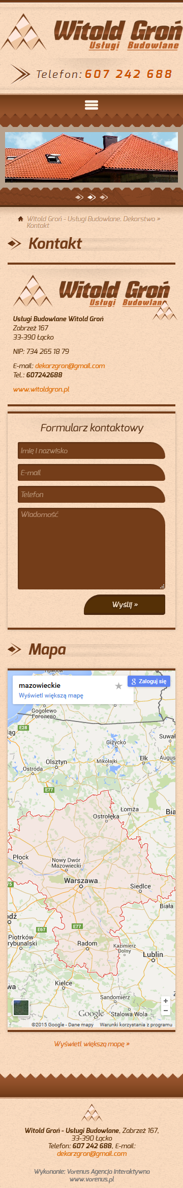 - Projekt i wykonanie strony internetowej dla firmy Witold Groń - Usługi Budowlane. Dekarstwo
