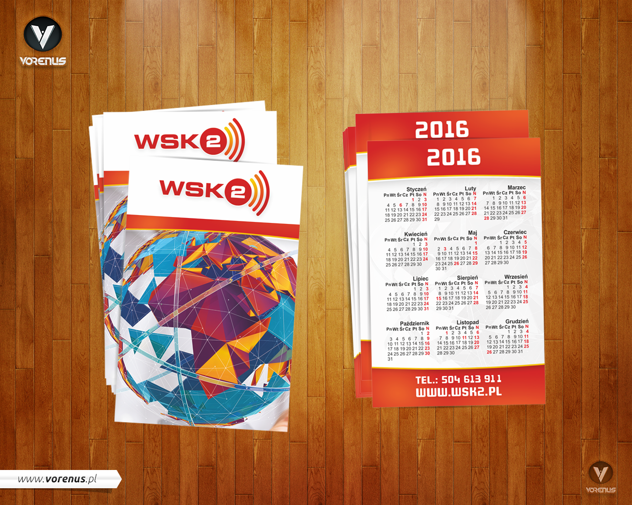 • WSK2 - Kalendarze 2016. Prezentacja kalendarzyków w formacie 55x85mm. Kalendarium na rok 2016. Wizytówka firmy. Przód