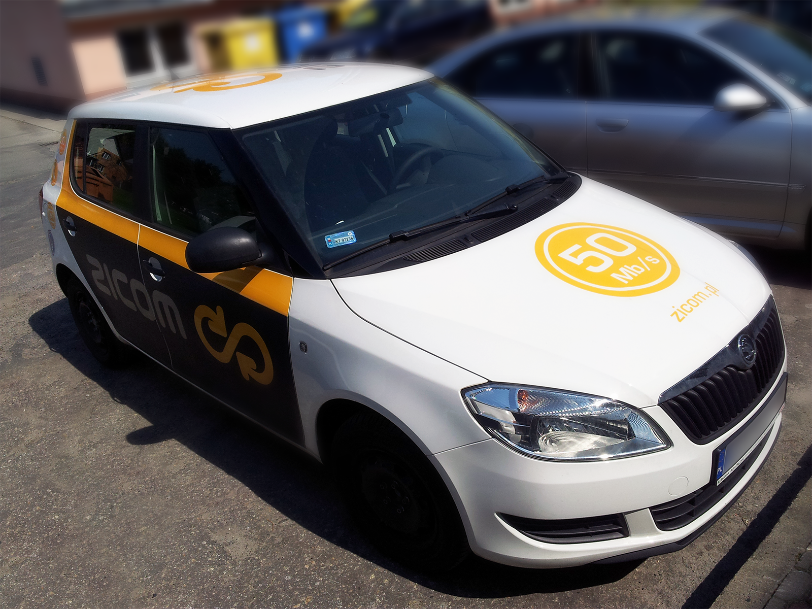 Zaprojektowanie drugiej wersji oklejenia samochodów firmowych Skoda Fabia dla firmy ZICOM.