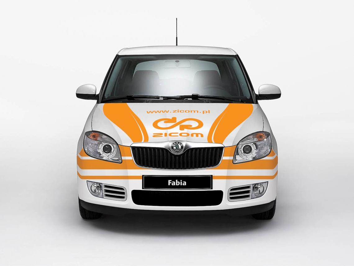 Zaprojektowanie oklejenia samochodów firmowych Skoda Fabia dla firmy ZICOM.