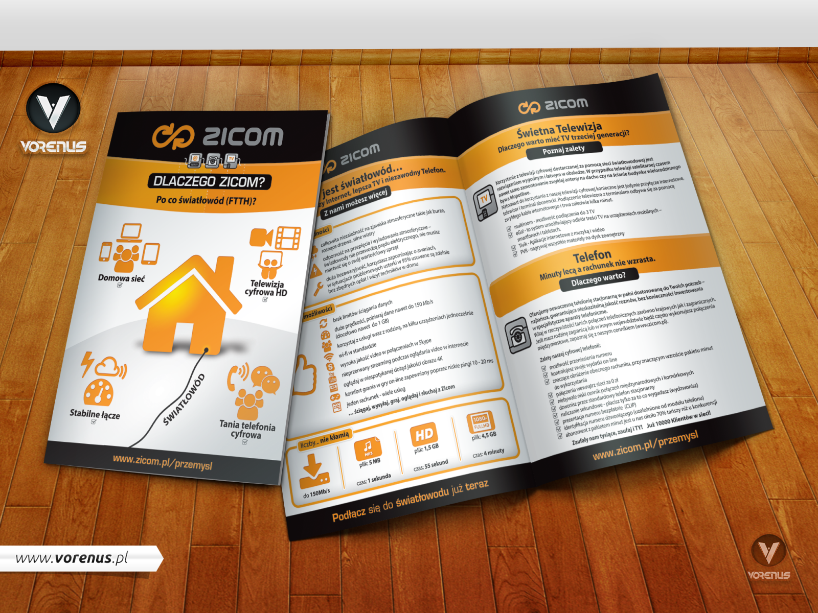 Projekt kampanii reklamowej dla firmy ZICOM, pt. "Po co światłowód (FTTH)".